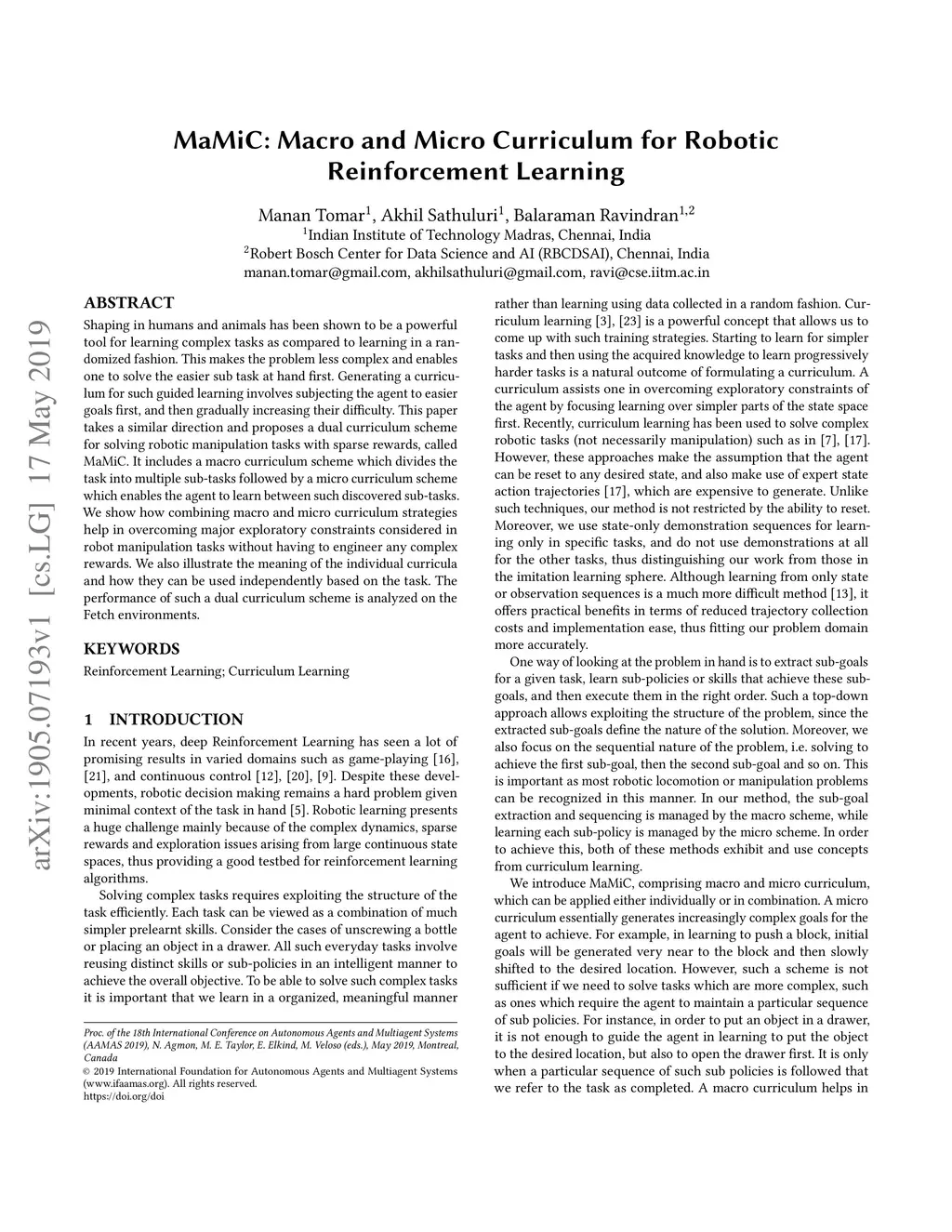 MaMiC: Macro and Micro Curriculum for Robotic Reinforcement Learning