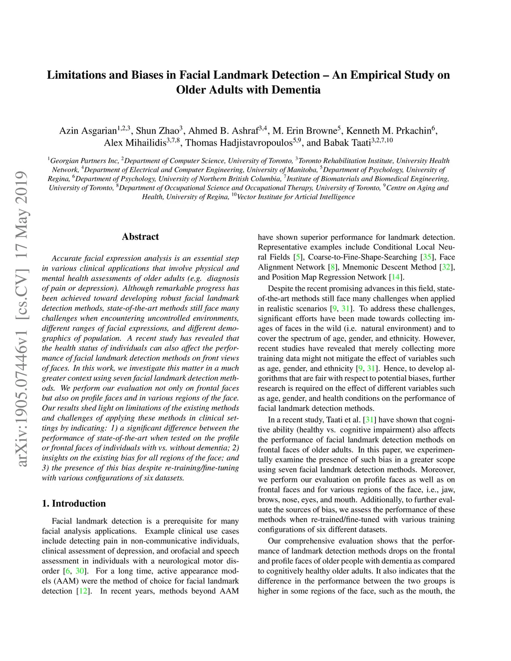 Accurate facial expression analysis is an essential step in various clinical applications that involve physical and mental health assessments of older adults (e.g. diagnosis of pain or depression). Although remarkable progress has been achieved toward developing robust facial landmark detection methods, state-of-the-art methods still face many challenges when encountering uncontrolled environments, different ranges of facial expressions, and different demographics of the population. A recent study has revealed that the health status of individuals can also affect the performance of facial landmark detection methods on front views of faces. In this work, we investigate this matter in a much greater context using seven facial landmark detection methods. We perform our evaluation not only on frontal faces but also on profile faces and in various regions of the face. Our results shed light on limitations of the existing methods and challenges of applying these methods in clinical settings by indicating: 1) a significant difference between the performance of state-of-the-art when tested on the profile or frontal faces of individuals with vs. without dementia; 2) insights on the existing bias for all regions of the face; and 3) the presence of this bias despite re-training/fine-tuning with various configurations of six datasets.