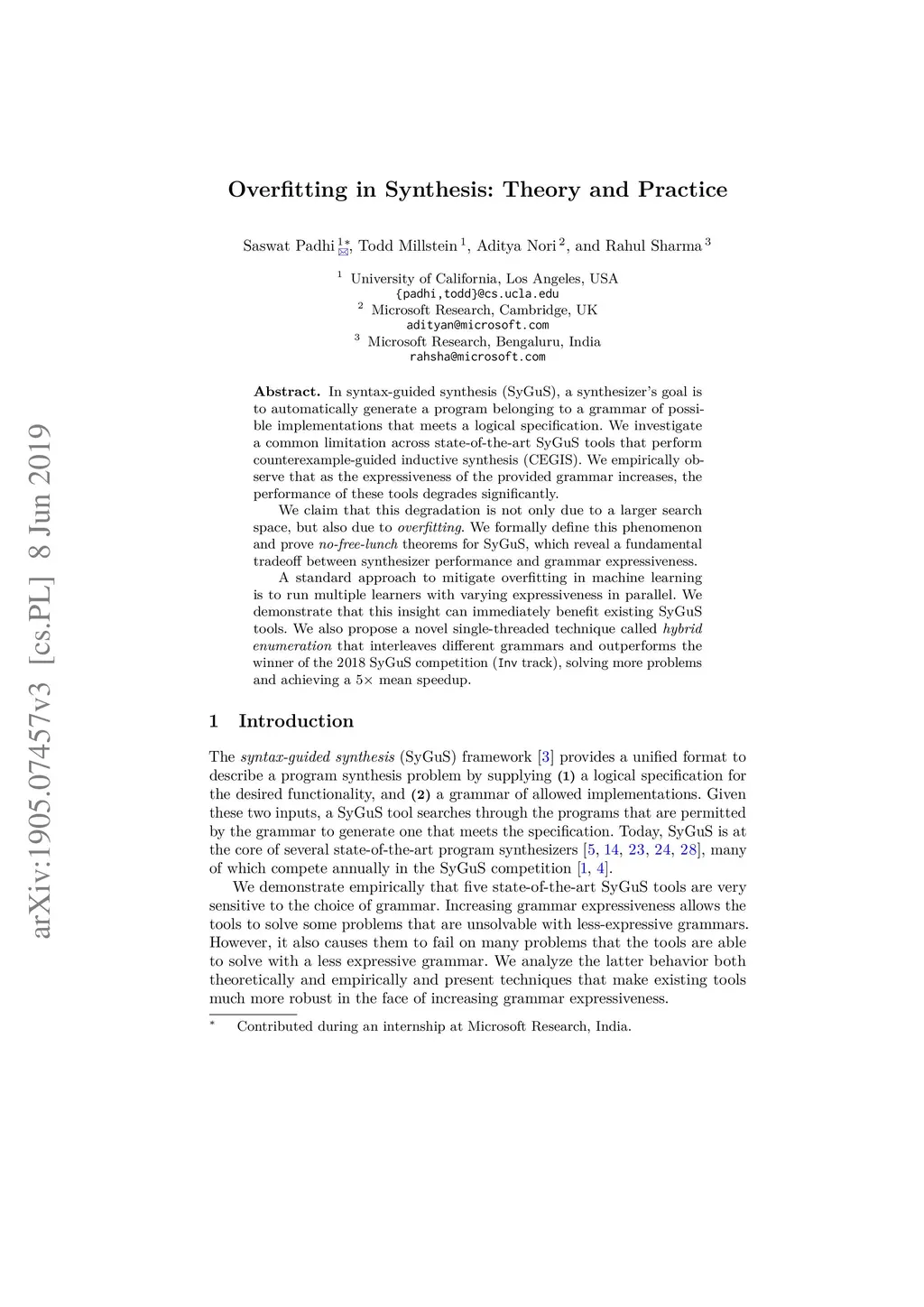 In syntax-guided synthesis (SyGuS), a synthesizer's goal is to automatically generate a program belonging to a grammar of possible implementations that meets a logical specification. We investigate a common limitation across state-of-the-art SyGuS tools that perform counterexample-guided inductive synthesis (CEGIS). We empirically observe that as the expressiveness of the provided grammar increases, the performance of these tools degrades significantly. We claim that this degradation is not only due to a larger search space, but also due to overfitting. We formally define this phenomenon and prove no-free-lunch theorems for SyGuS, which reveal a fundamental tradeoff between synthesizer performance and grammar expressiveness. A standard approach to mitigate overfitting in machine learning is to run multiple learners with varying expressiveness in parallel. We demonstrate that this insight can immediately benefit existing SyGuS tools. We also propose a novel single-threaded technique called hybrid enumeration that interleaves different grammars and outperforms the winner of the 2018 SyGuS competition (Inv track), solving more problems and achieving a mean speedup.