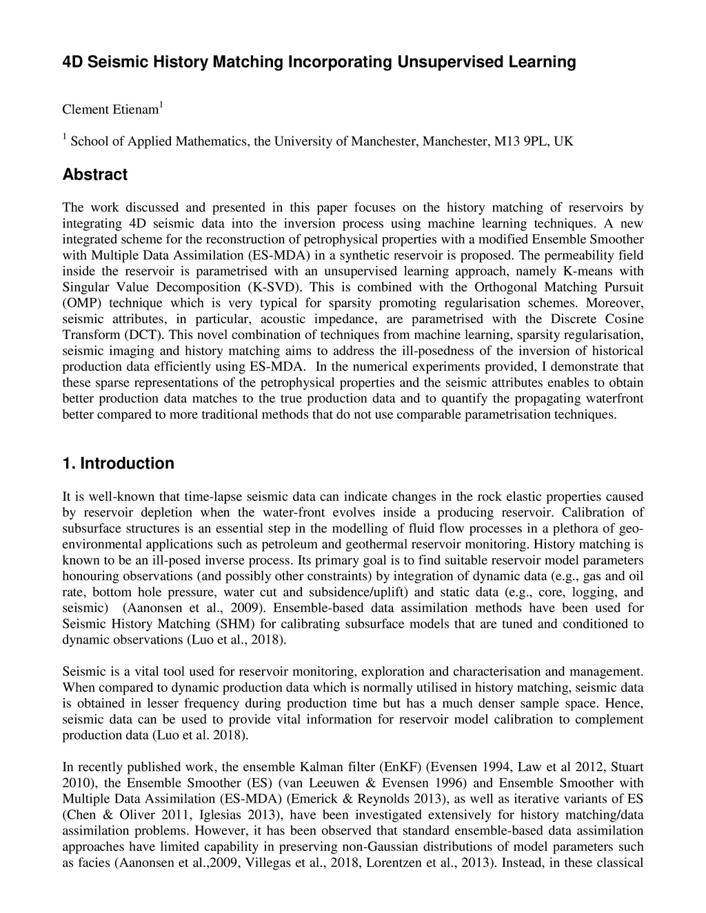 4D Seismic History Matching Incorporating Unsupervised Learning