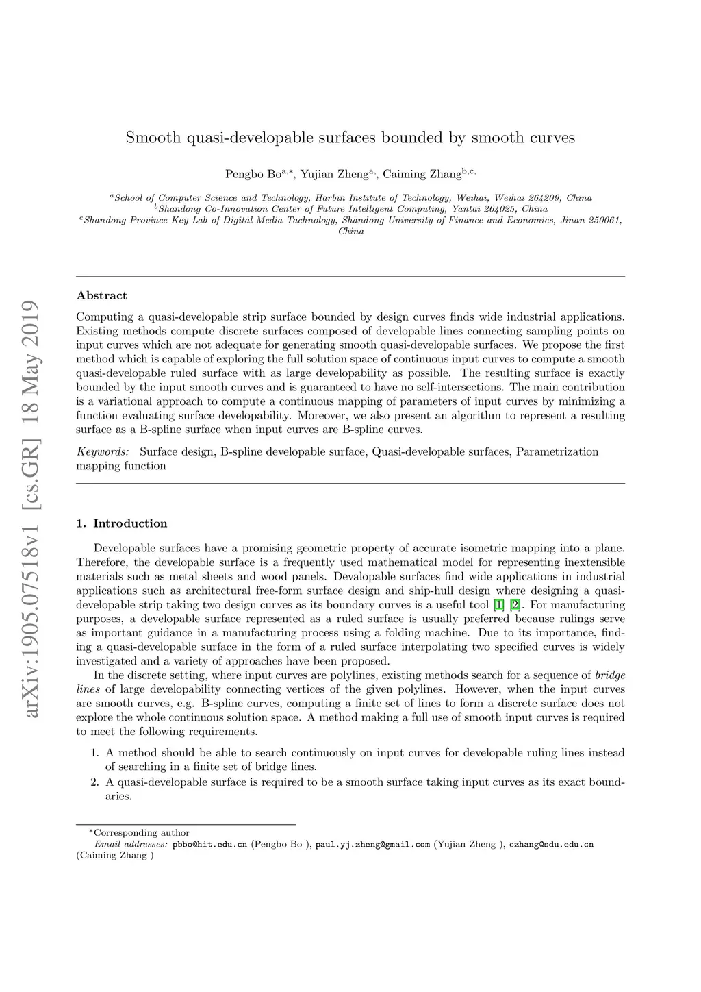 Computing a quasi-developable strip surface bounded by design curves finds wide industrial applications. Existing methods compute discrete surfaces composed of developable lines connecting sampling points on input curves which are not adequate for generating smooth quasi-developable surfaces. We propose the first method which is capable of exploring the full solution space of continuous input curves to compute a smooth quasi-developable ruled surface with as large developability as possible. The resulting surface is exactly bounded by the input smooth curves and is guaranteed to have no self-intersections. The main contribution is a variational approach to compute a continuous mapping of parameters of input curves by minimizing a function evaluating surface developability. Moreover, we also present an algorithm to represent a resulting surface as a B-spline surface when input curves are B-spline curves.