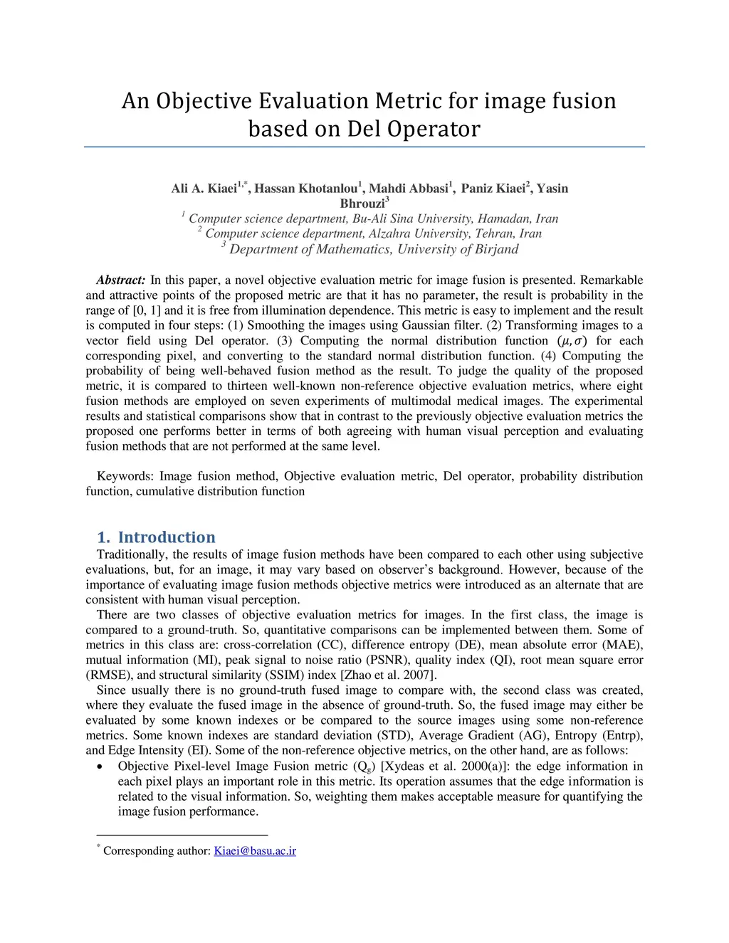 An Objective Evaluation Metric for image fusion based on Del Operator