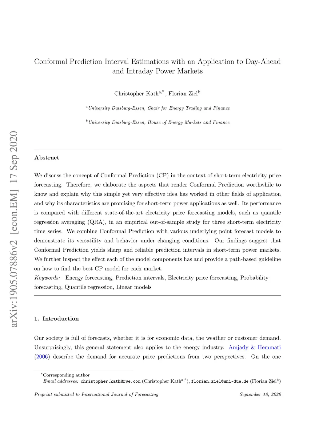 We discuss a concept denoted as Conformal Prediction (CP) in this paper. While initially stemming from the world of machine learning, it was never applied or analyzed in the context of short-term electricity price forecasting. Therefore, we elaborate the aspects that render Conformal Prediction worthwhile to know and explain why its simple yet very efficient idea has worked in other fields of application and why its characteristics are promising for short-term power applications as well. We compare its performance with different state-of-the-art electricity price forecasting models such as quantile regression averaging (QRA) in an empirical out-of-sample study for three short-term electricity time series. We combine Conformal Prediction with various underlying point forecast models to demonstrate its versatility and behavior under changing conditions. Our findings suggest that Conformal Prediction yields sharp and reliable prediction intervals in short-term power markets. We further inspect the effect each of Conformal Prediction's model components has and provide a path-based guideline on how to find the best CP model for each market.