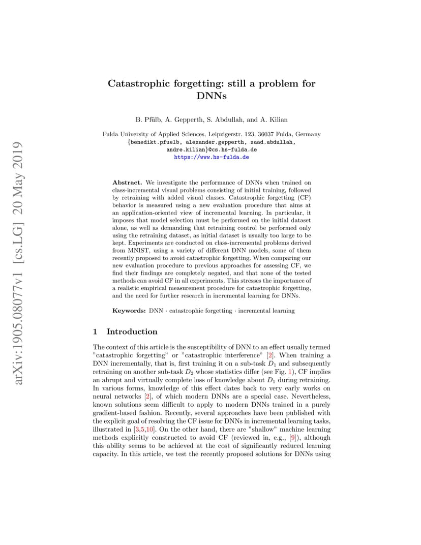 Catastrophic forgetting: still a problem for DNNs
