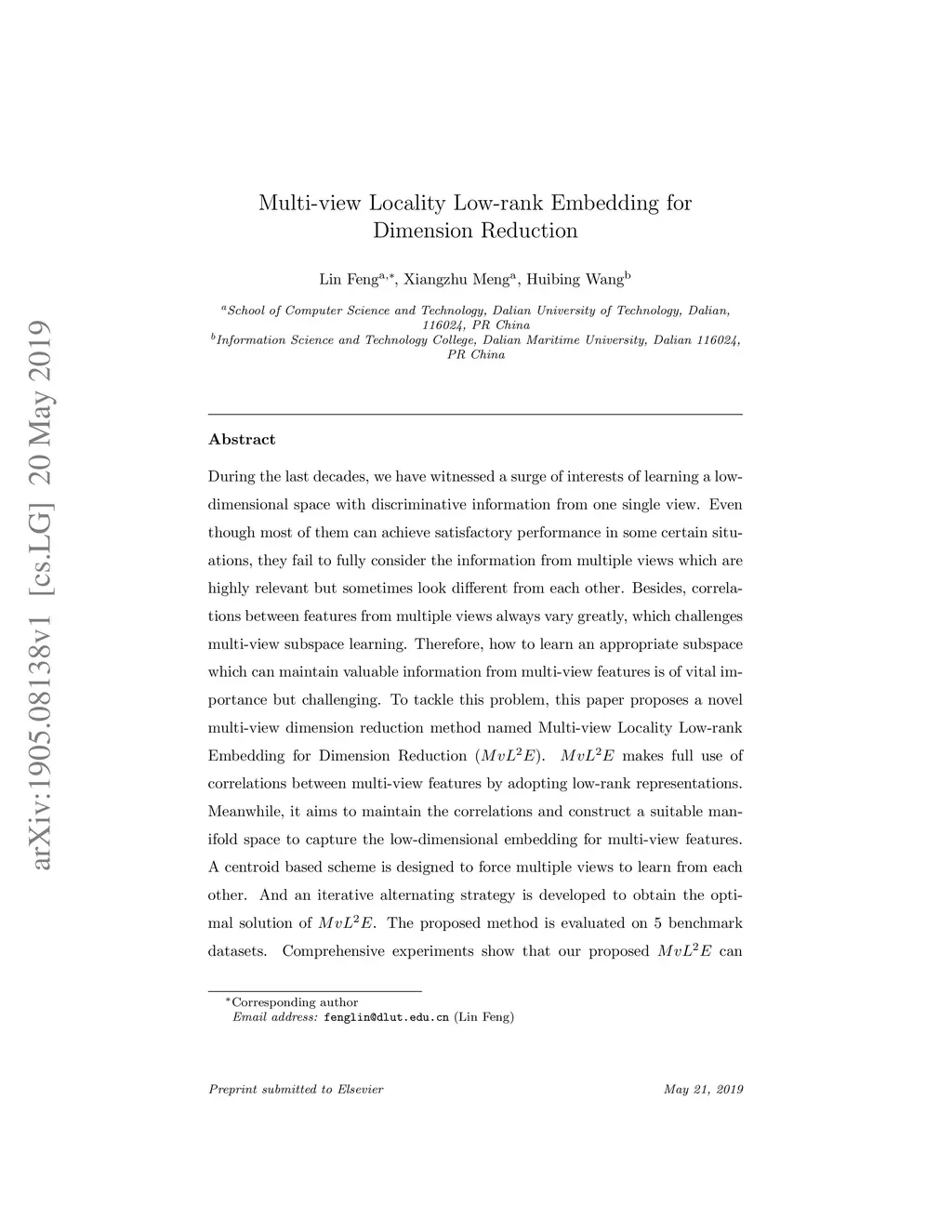 Multi-view Locality Low-rank Embedding for Dimension Reduction