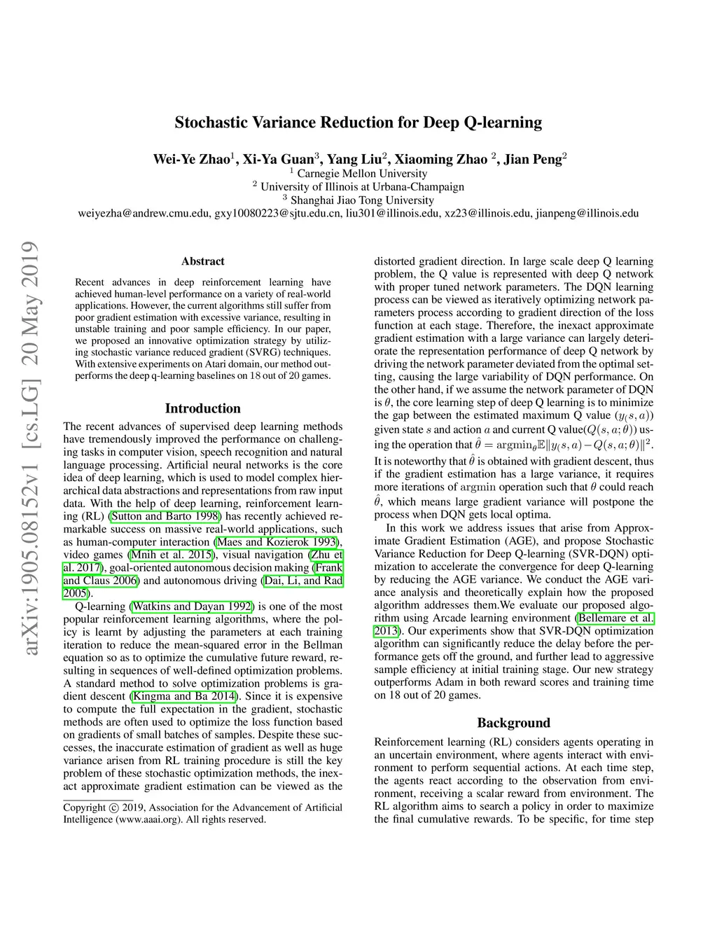 Recent advances in deep reinforcement learning have achieved human-level performance on a variety of real-world applications. However, the current algorithms still suffer from poor gradient estimation with excessive variance, resulting in unstable training and poor sample efficiency. In our paper, we proposed an innovative optimization strategy by utilizing stochastic variance reduced gradient (SVRG) techniques. With extensive experiments on Atari domain, our method outperforms the deep q-learning baselines on 18 out of 20 games.