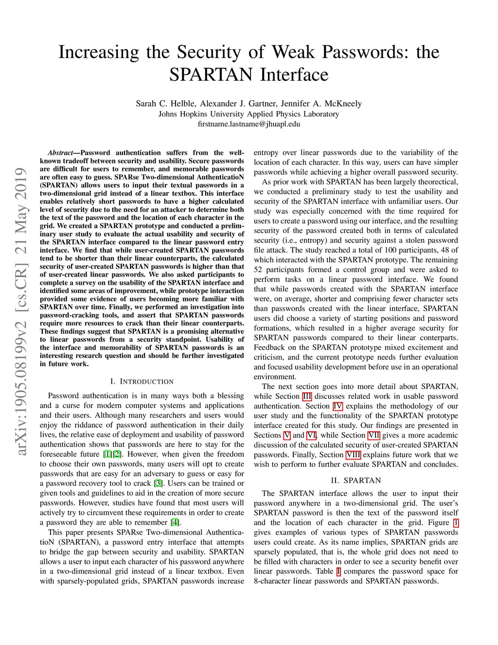 Increasing the Security of Weak Passwords: the SPARTAN Interface