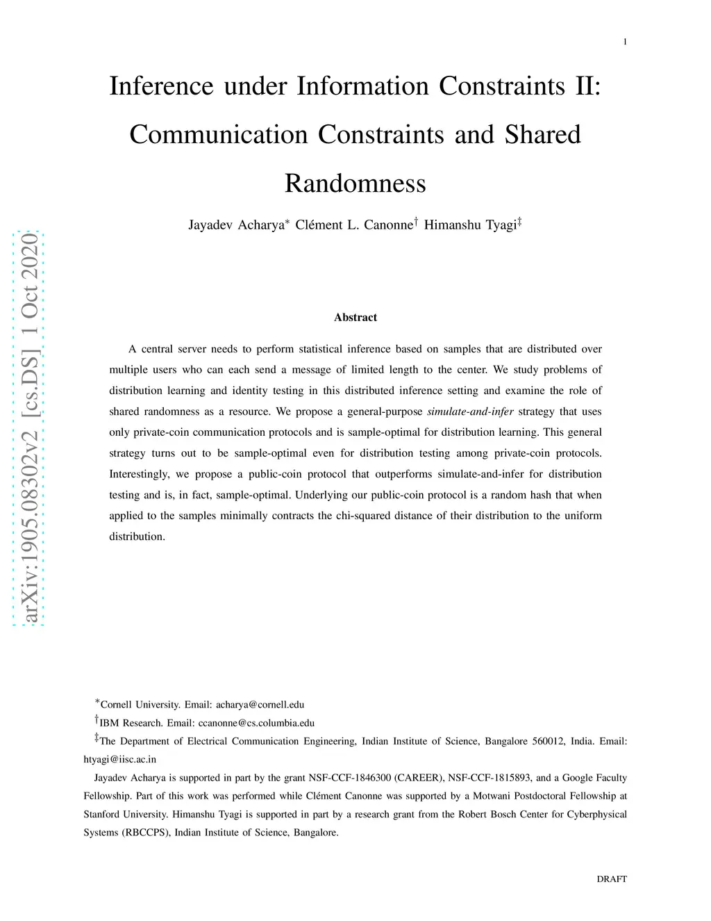 Inference under Information Constraints II: Communication Constraints