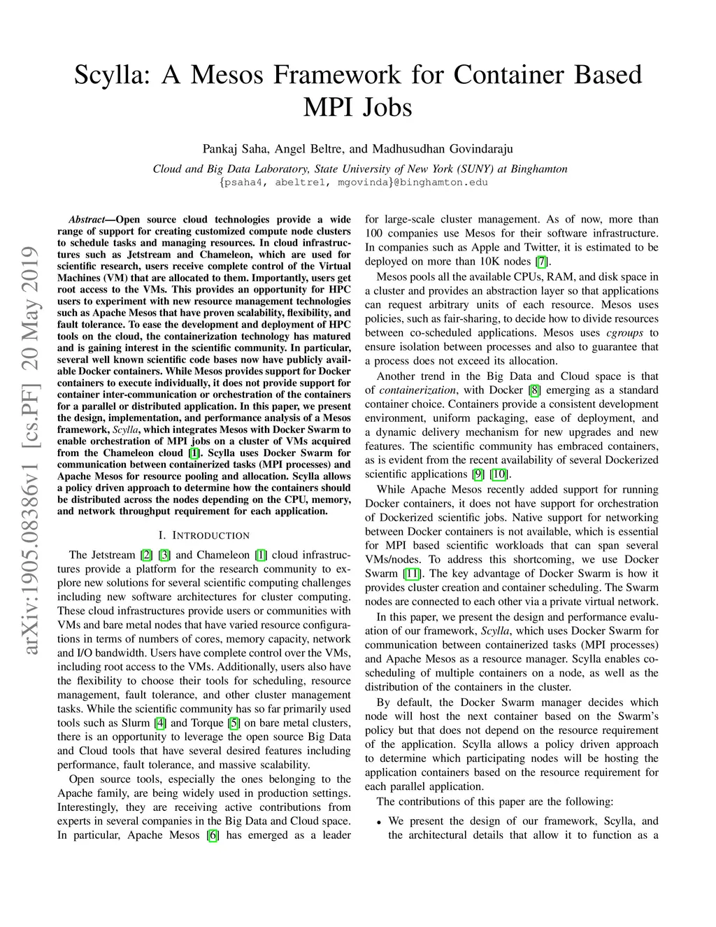 Scylla: A Mesos Framework for Container Based MPI Jobs
