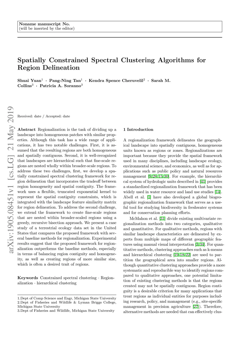 Spatially Constrained Spectral Clustering Algorithms for Region