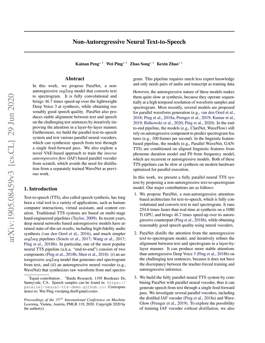 Non-Autoregressive Neural Text-to-Speech