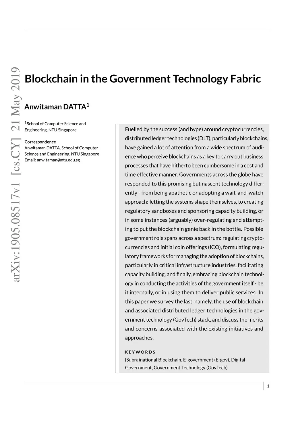 Blockchain in the Government Technology Fabric