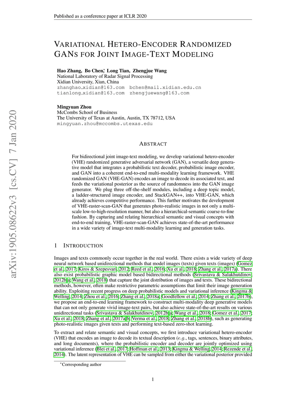 Variational Hetero-Encoder Randomized GANs for Joint Image-Text Modeling