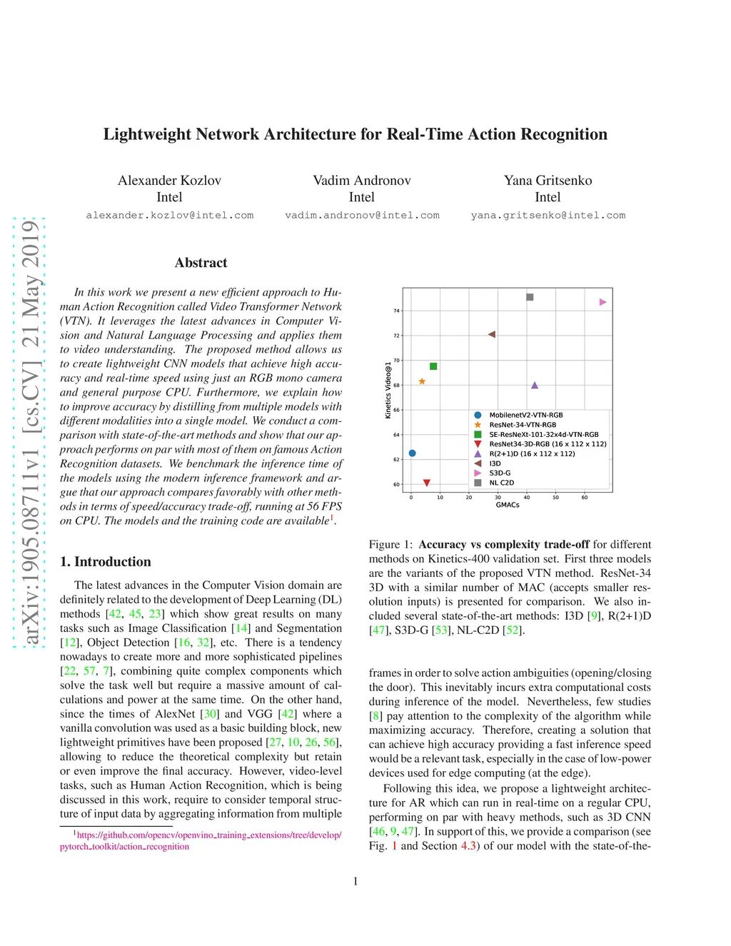 Lightweight Network Architecture for Real-Time Action Recognition