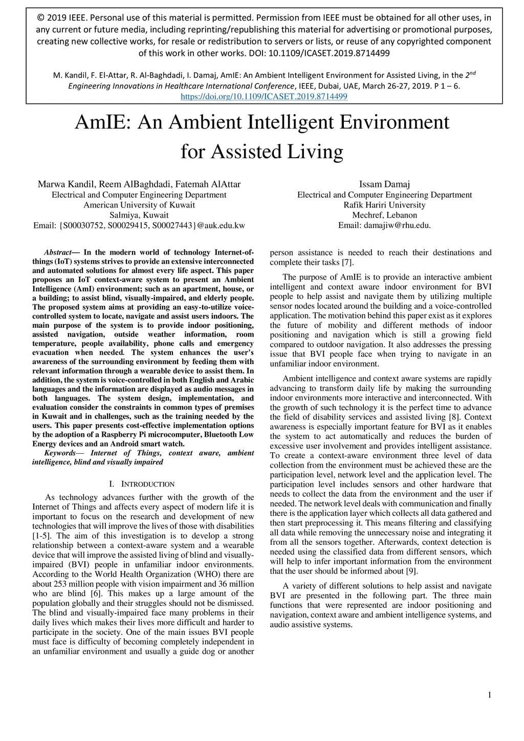 AmIE: An Ambient Intelligent Environment for Assisted Living