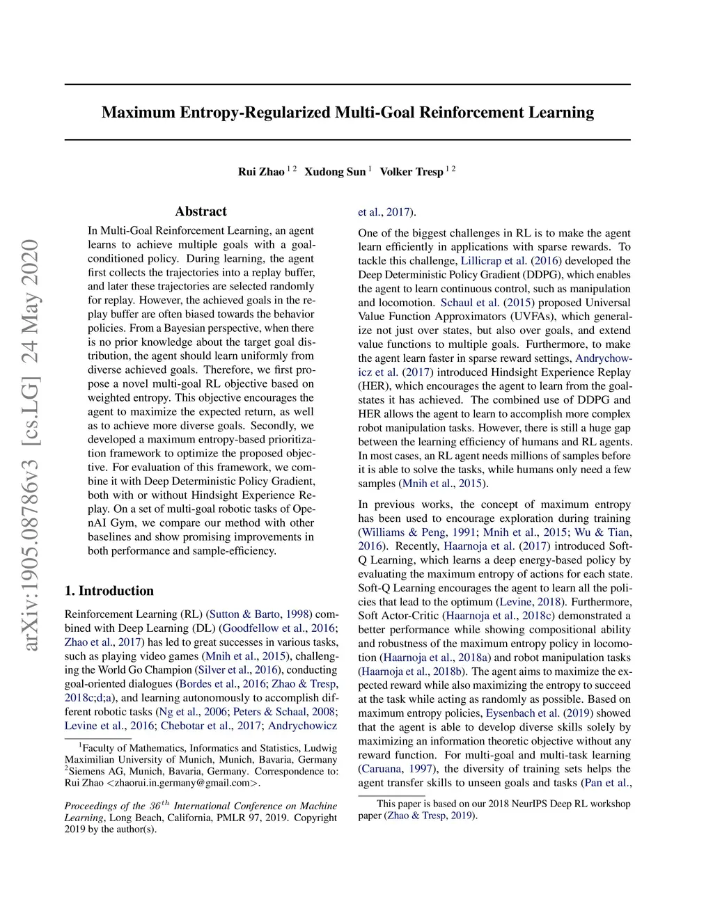 Maximum Entropy-Regularized Multi-Goal Reinforcement Learning