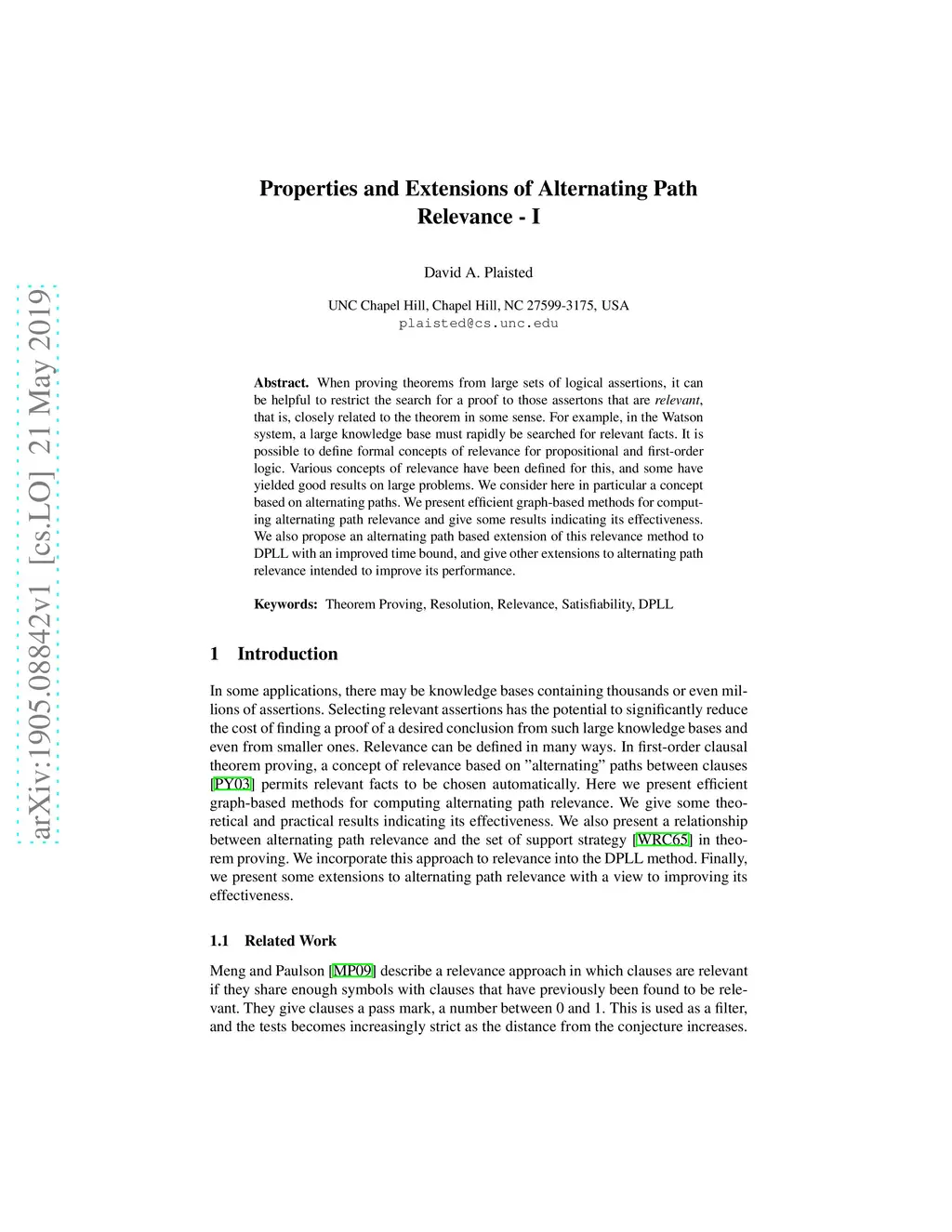 When proving theorems from large sets of logical assertions, it can be helpful to restrict the search for a proof to those assertions that are relevant, that is, closely related to the theorem in some sense. For example, in the Watson system, a large knowledge base must rapidly be searched for relevant facts. It is possible to define formal concepts of relevance for propositional and first-order logic. Various concepts of relevance have been defined for this, and some have yielded good results on large problems. We consider here in particular a concept based on alternating paths.We present efficient graph-based methods for computing alternating path relevance and give some results indicating its effectiveness. We also propose an alternating path based extension of this relevance method to DPLL with an improved time bound, and give other extensions to alternating path relevance intended to improve its performance.