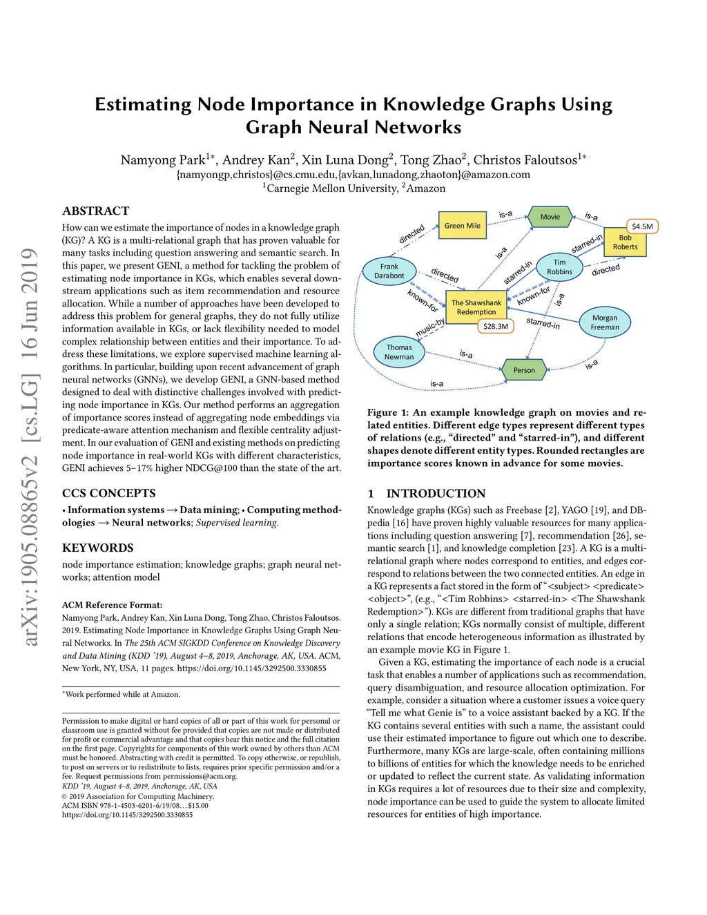Estimating Node Importance in Knowledge Graphs Using Graph Neural