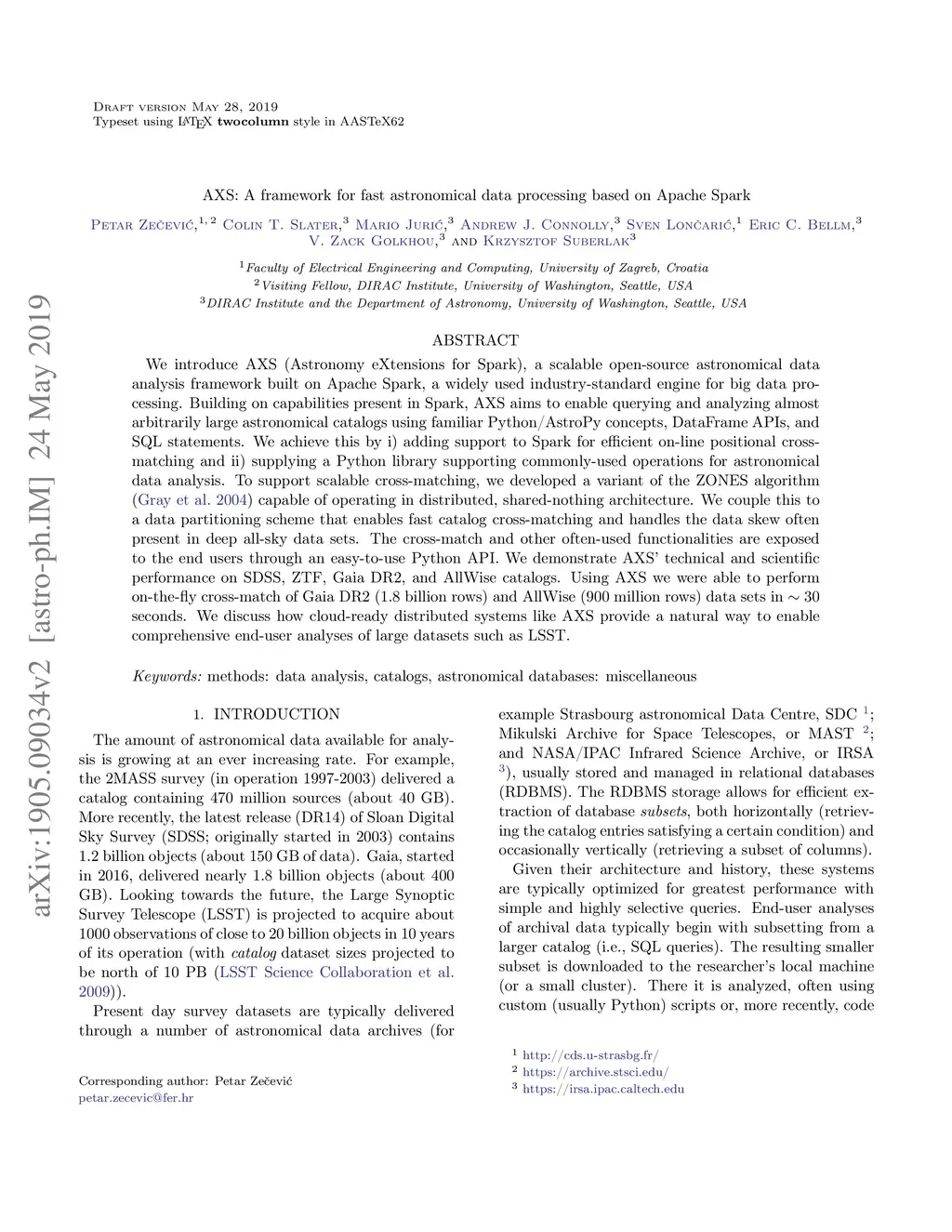 AXS: A framework for fast astronomical data processing based on Apache