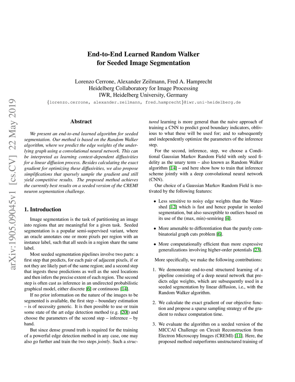 End-to-End Learned Random Walker for Seeded Image Segmentation