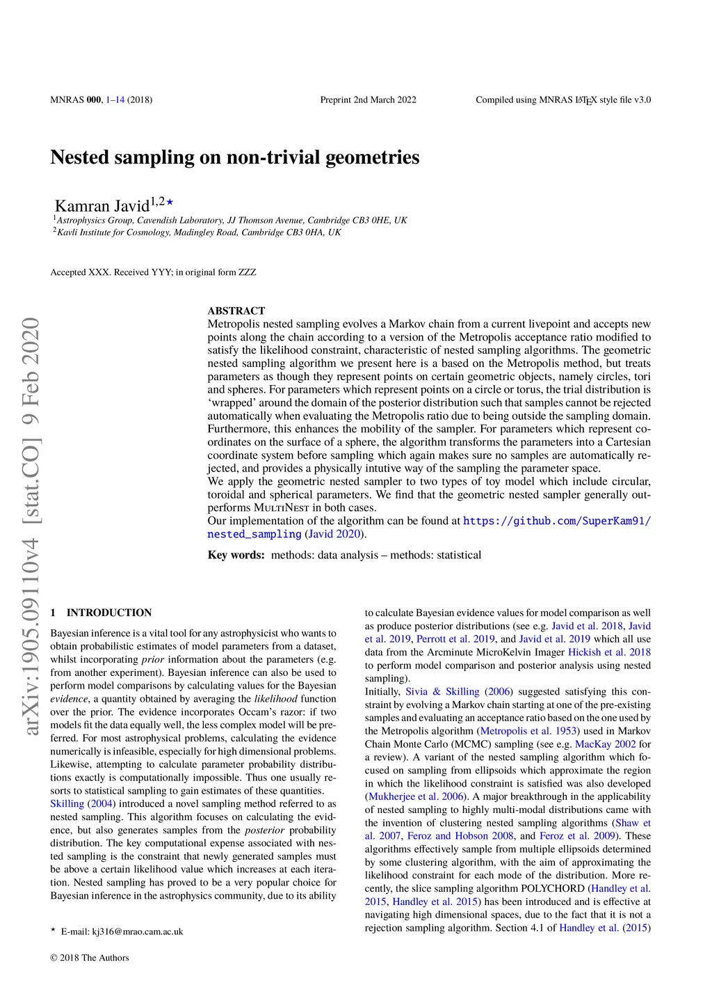 Nested sampling on non-trivial geometries