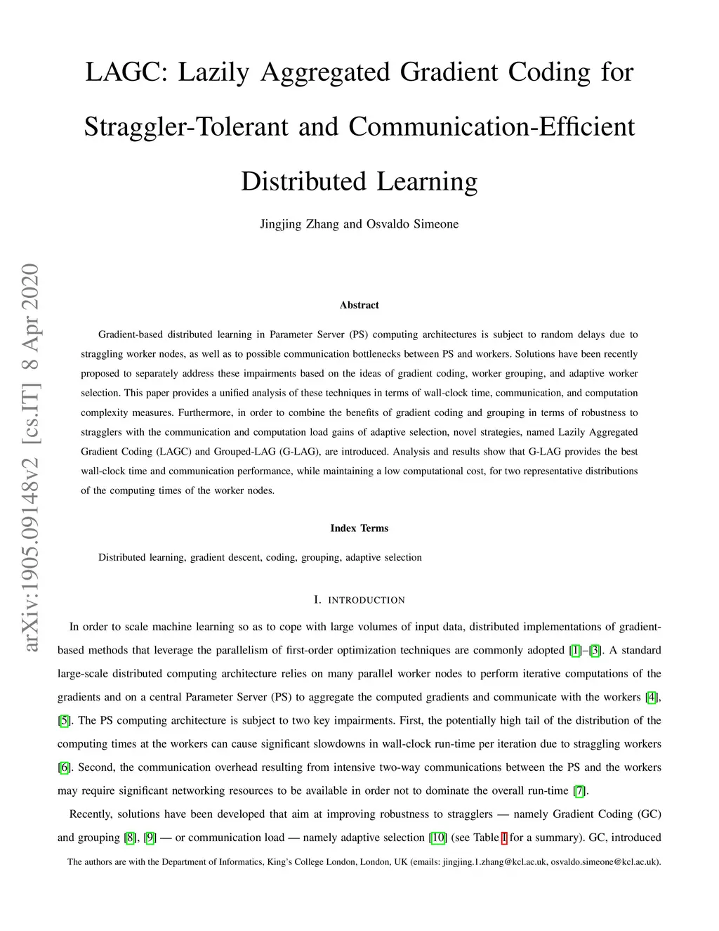 Gradient-based distributed learning in Parameter Server (PS) computing architectures is subject to random delays due to straggling worker nodes, as well as to possible communication bottlenecks between PS and workers. Solutions have been recently proposed to separately address these impairments based on the ideas of gradient coding, worker grouping, and adaptive worker selection. This paper provides a unified analysis of these techniques in terms of wall-clock time, communication, and computation complexity measures. Furthermore, in order to combine the benefits of gradient coding and grouping in terms of robustness to stragglers with the communication and computation load gains of adaptive selection, novel strategies, named Lazily Aggregated Gradient Coding (LAGC) and Grouped-LAG (G-LAG), are introduced. Analysis and results show that G-LAG provides the best wall-clock time and communication performance, while maintaining a low computational cost, for two representative distributions of the computing times of the worker nodes.