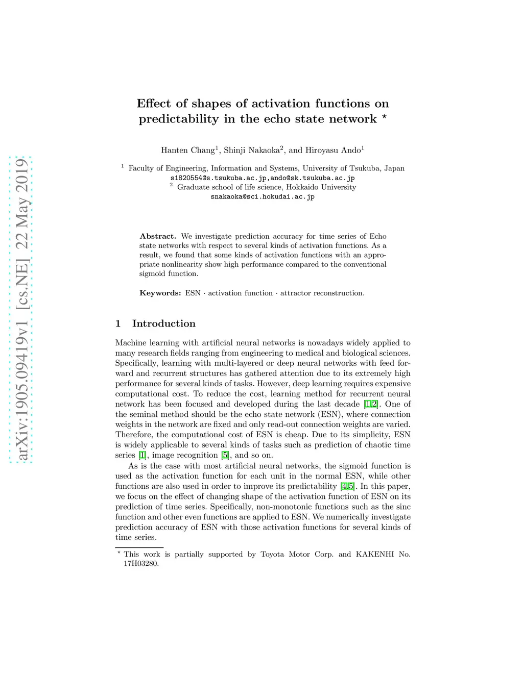 We investigate prediction accuracy for time series of Echo state networks with respect to several kinds of activation functions. As a result, we found that some kinds of activation functions with an appropriate nonlinearity show high performance compared to the conventional sigmoid function.