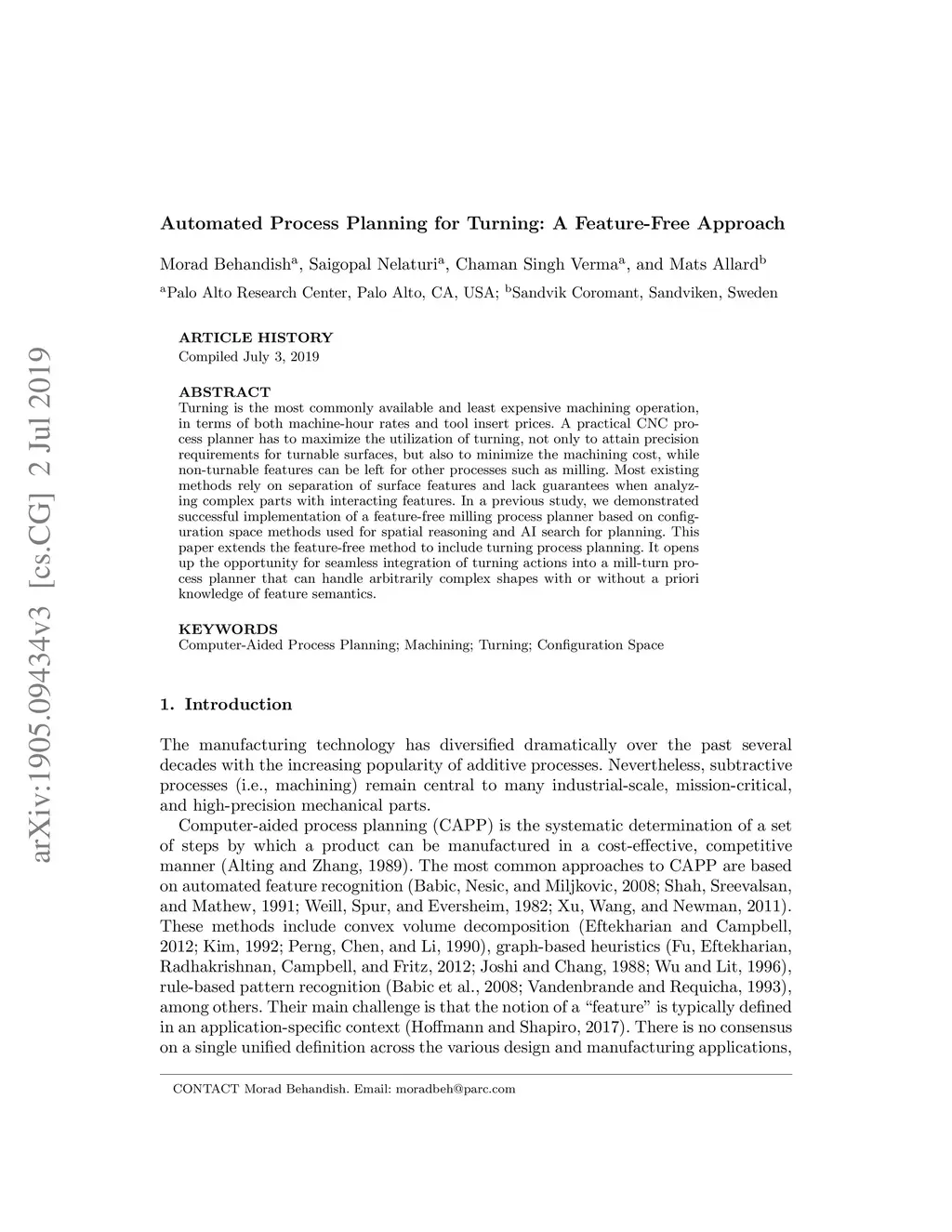Turning is the most commonly available and least expensive machining operation, in terms of both machine-hour rates and tool insert prices. A practical CNC process planner has to maximize the utilization of turning, not only to attain precision requirements for turnable surfaces, but also to minimize the machining cost, while non-turnable features can be left for other processes such as milling. Most existing methods rely on separation of surface features and lack guarantees when analyzing complex parts with interacting features. In a previous study, we demonstrated successful implementation of a feature-free milling process planner based on configuration space methods used for spatial reasoning and AI search for planning. This paper extends the feature-free method to include turning process planning. It opens up the opportunity for seamless integration of turning actions into a mill-turn process planner that can handle arbitrarily complex shapes with or without a priori knowledge of feature semantics.