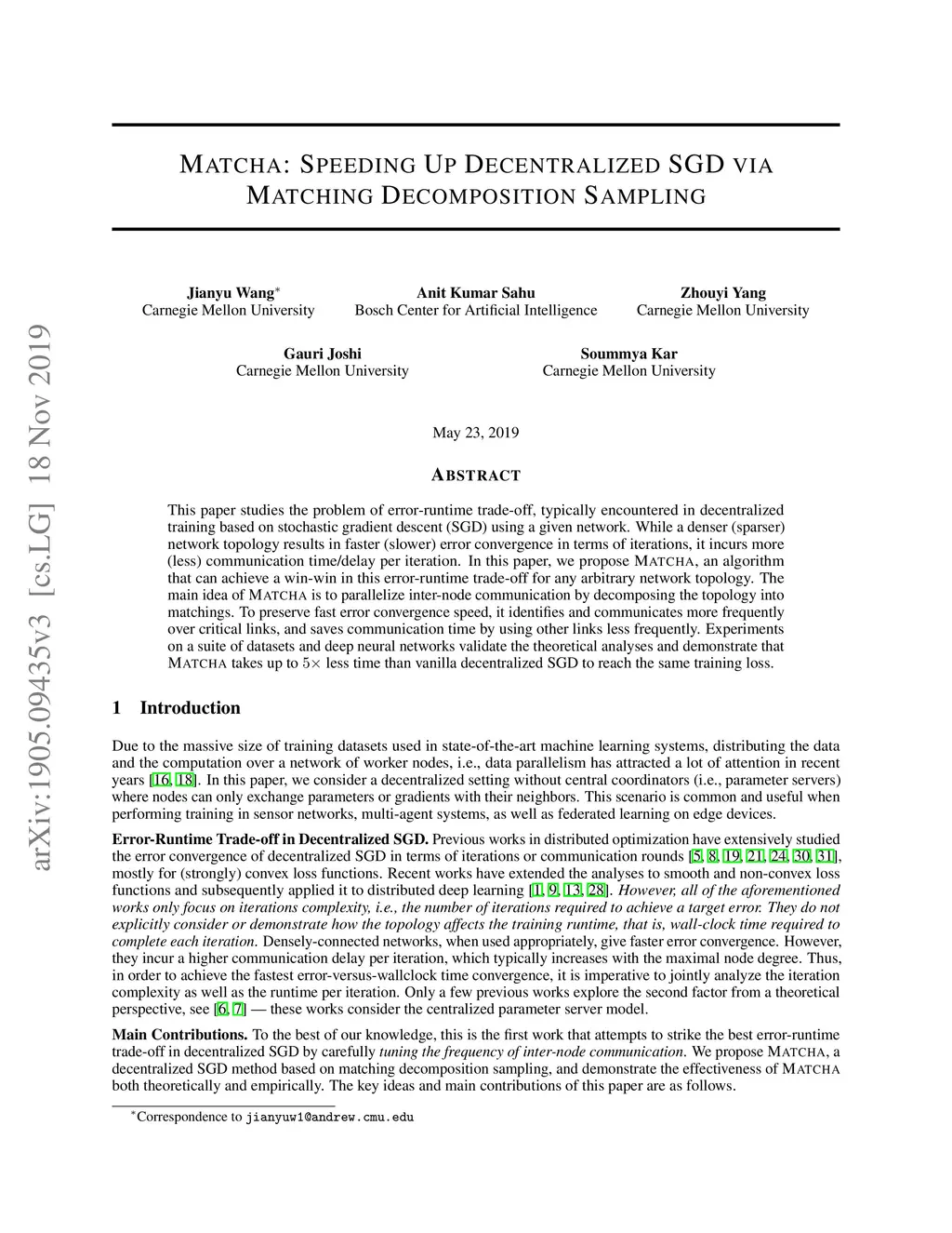 MATCHA: Speeding Up Decentralized SGD via Matching Decomposition