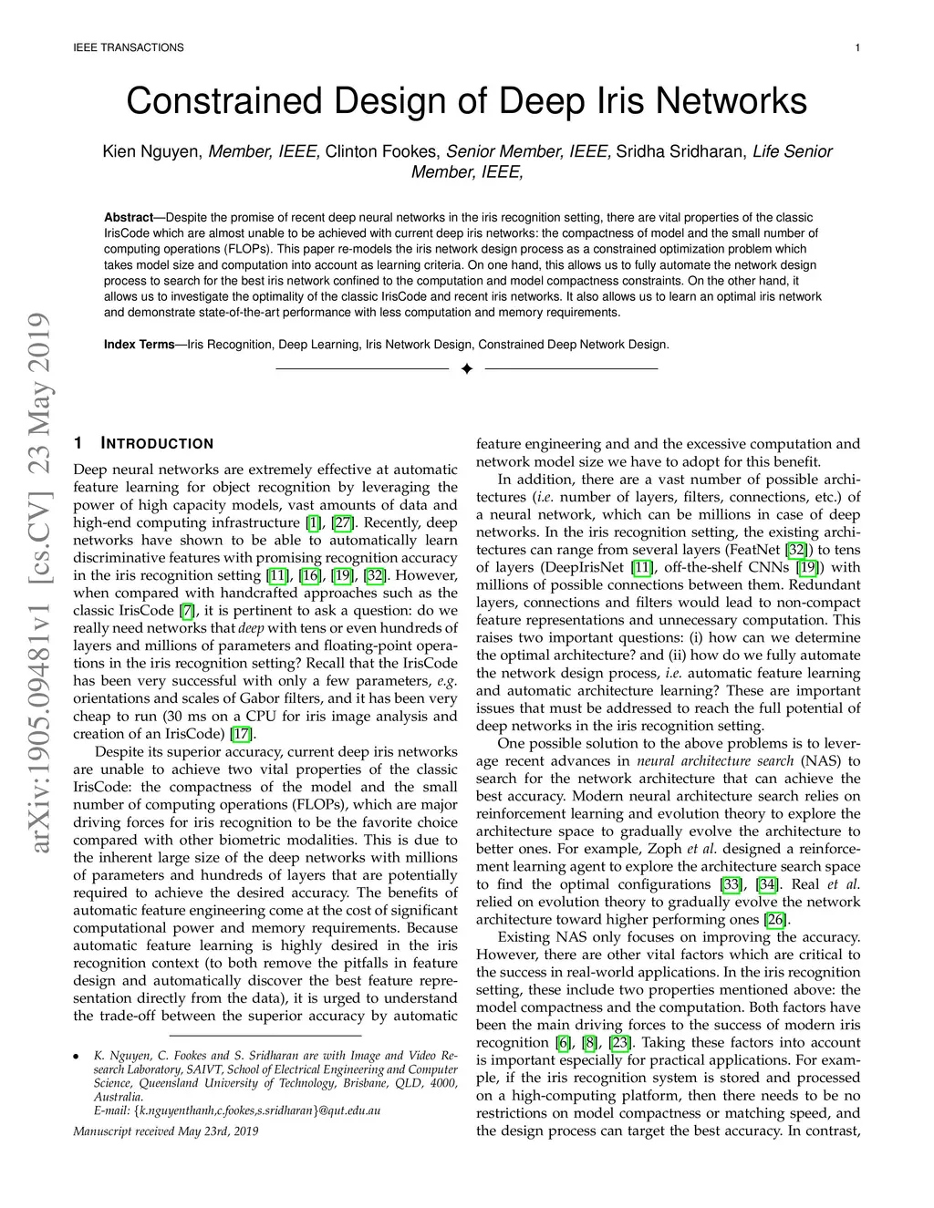 Constrained Design of Deep Iris Networks
