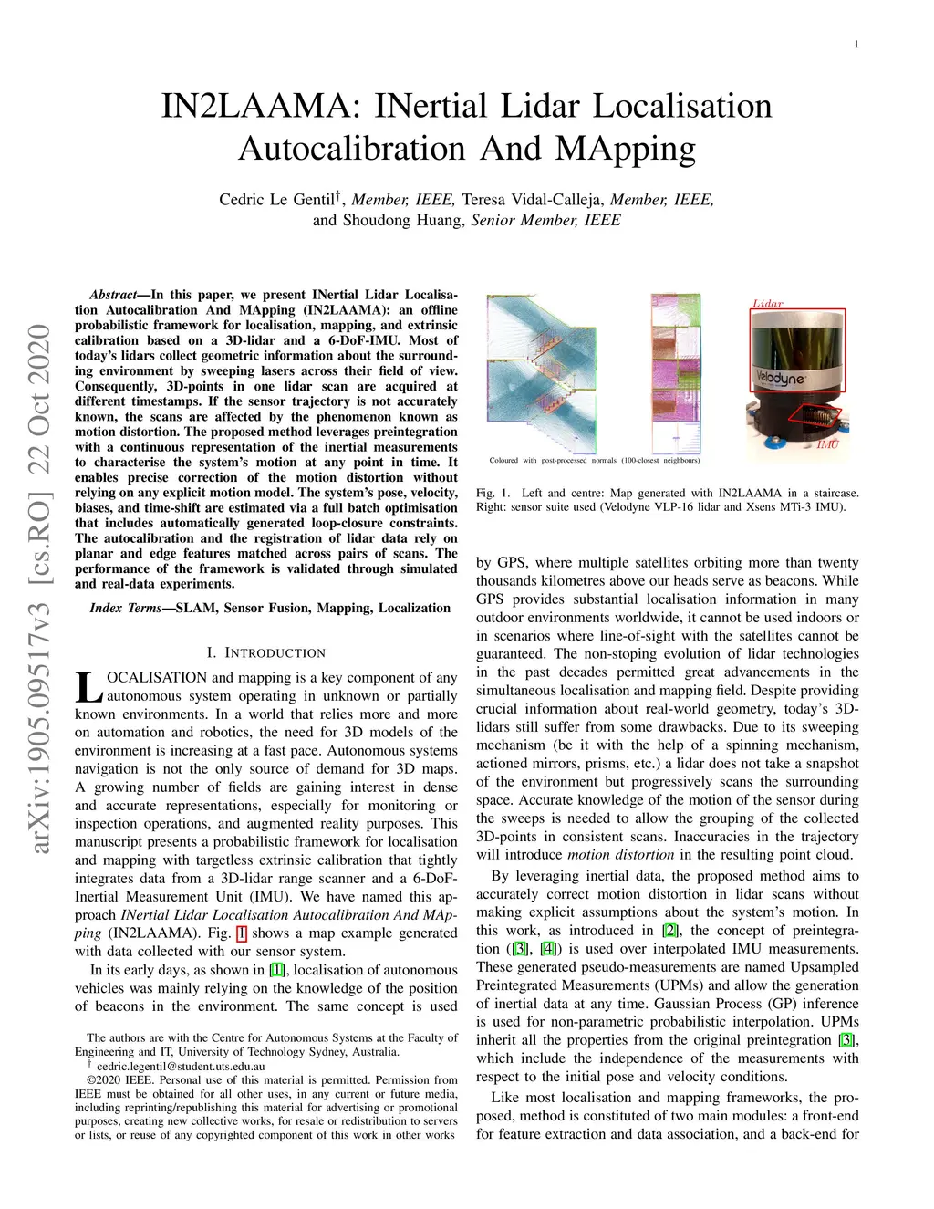 IN2LAAMA: INertial Lidar Localisation Autocalibration And MApping