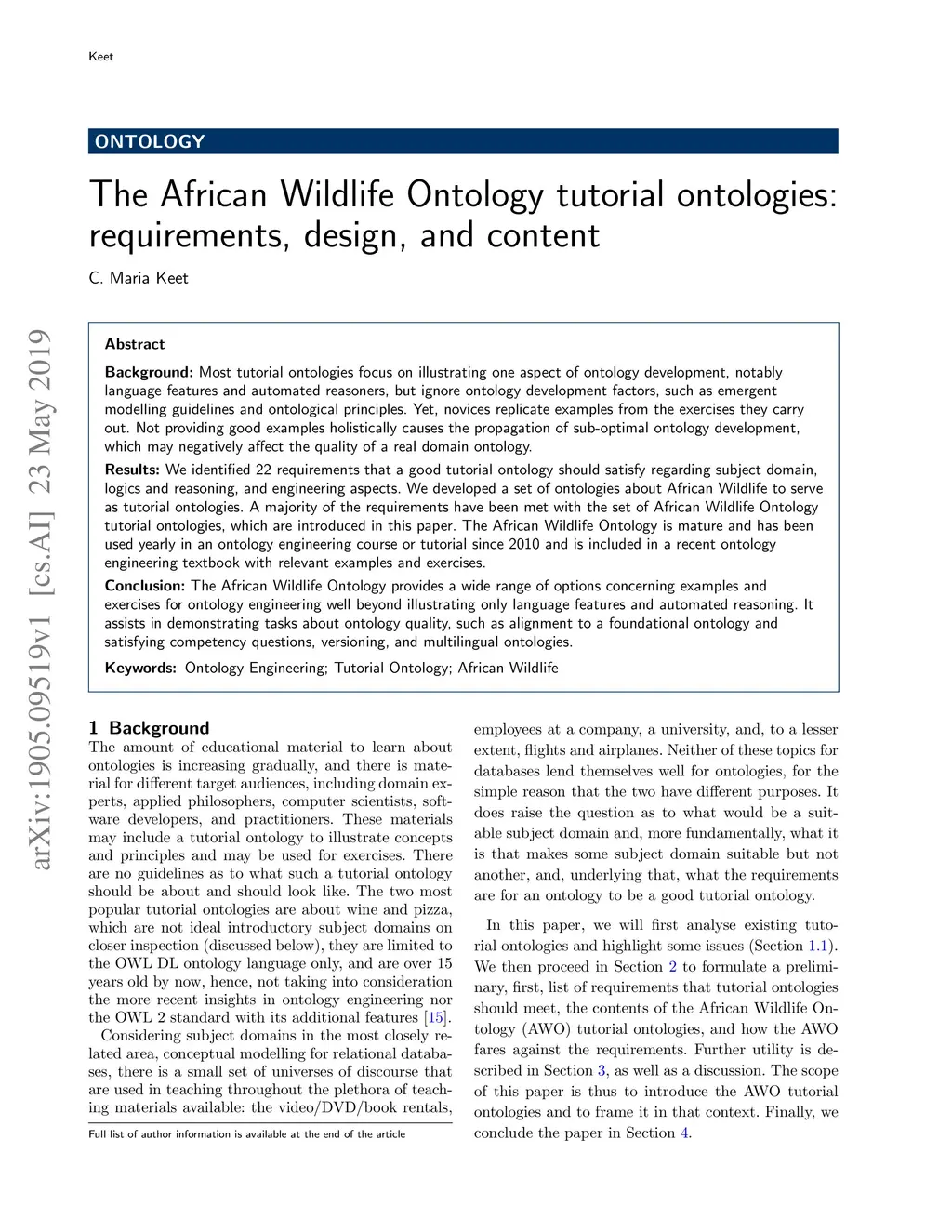 The African Wildlife Ontology tutorial ontologies: requirements, design,