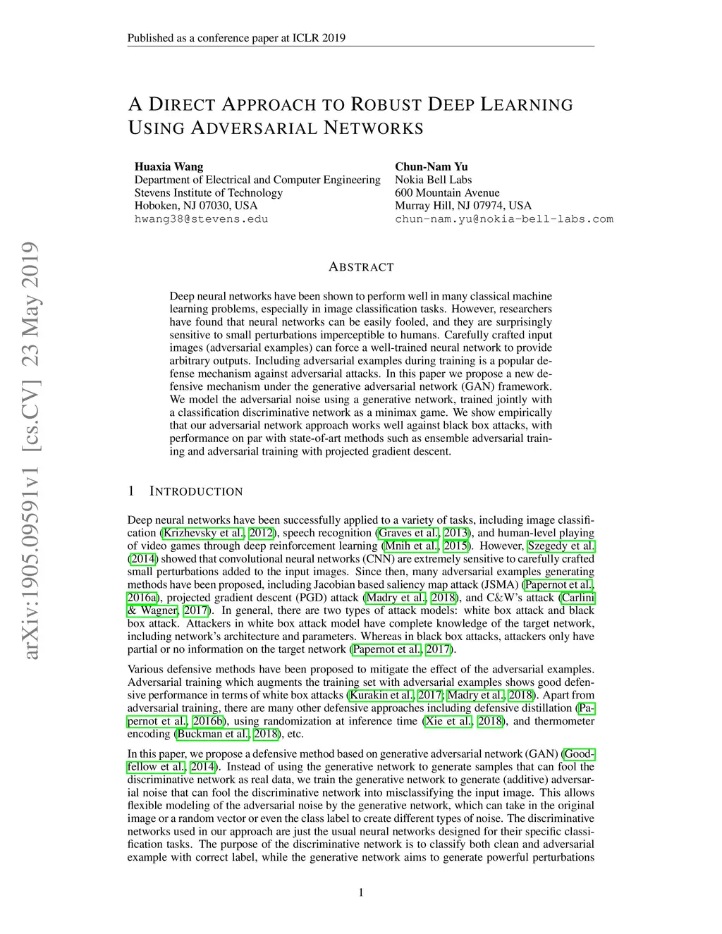 A Direct Approach to Robust Deep Learning Using Adversarial Networks