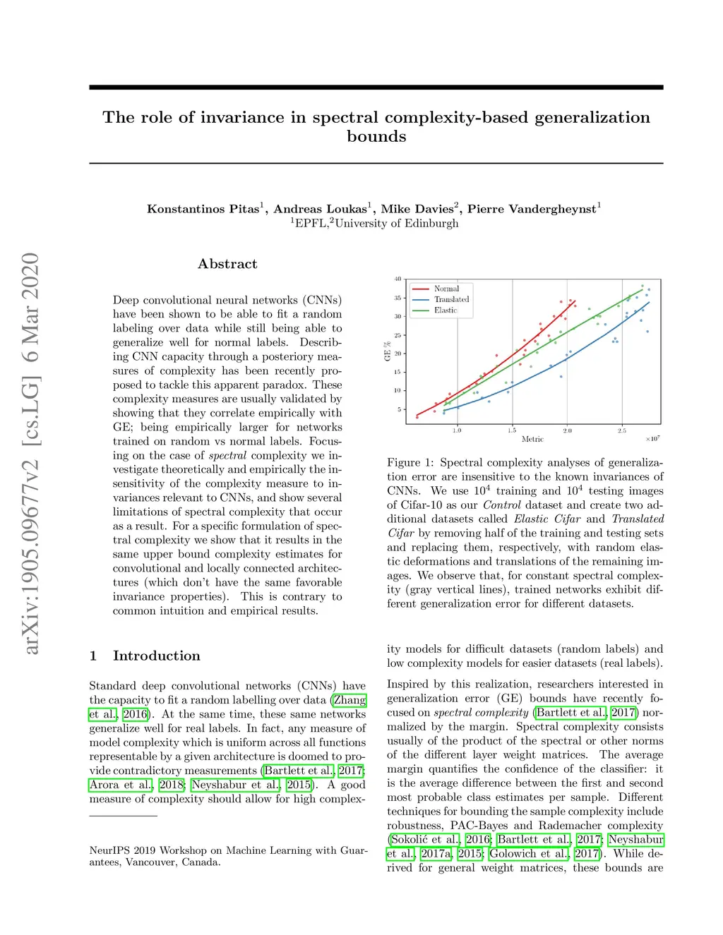 Deep convolutional neural networks (CNNs) have been shown to be able to fit a random labeling over data while still being able to generalize well for normal labels. Describing CNN capacity through a posteriori measures of complexity has been recently proposed to tackle this apparent paradox. These complexity measures are usually validated by showing that they correlate empirically with GE; being empirically larger for networks trained on random vs normal labels. Focusing on the case of spectral complexity we investigate theoretically and empirically the insensitivity of the complexity measure to invariances relevant to CNNs, and show several limitations of spectral complexity that occur as a result. For a specific formulation of spectral complexity we show that it results in the same upper bound complexity estimates for convolutional and locally connected architectures (which don't have the same favorable invariance properties). This is contrary to common intuition and empirical results.