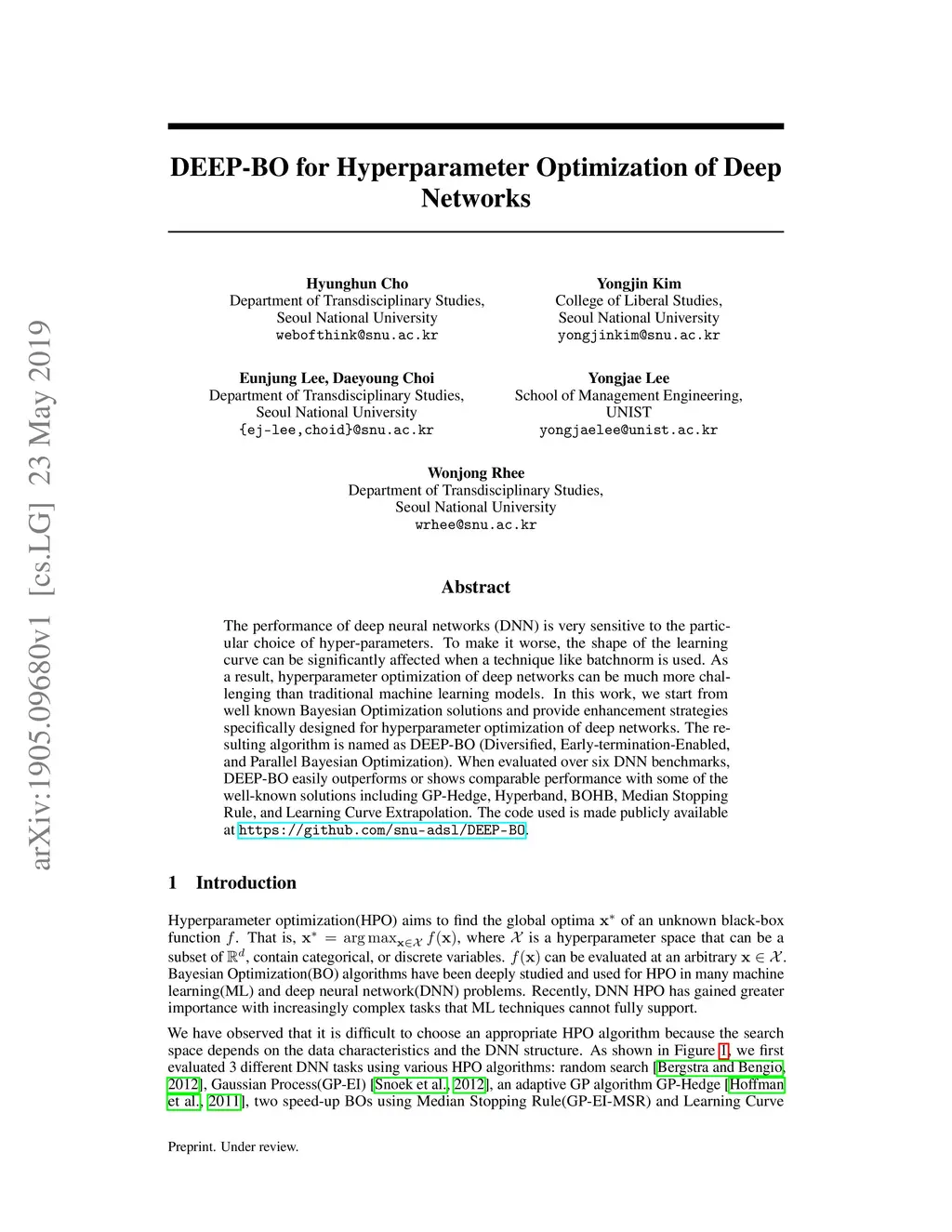 DEEP-BO for Hyperparameter Optimization of Deep Networks