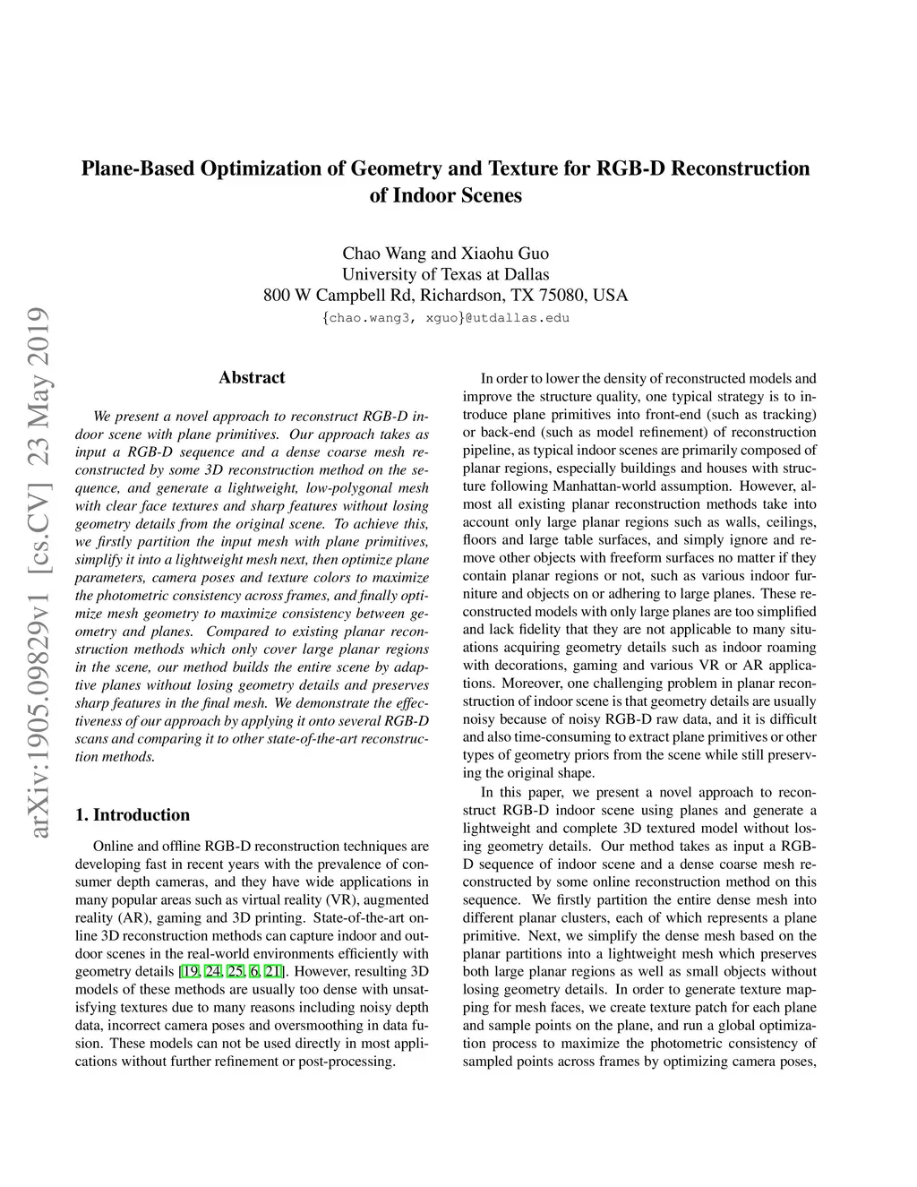 Plane-Based Optimization of Geometry and Texture for RGB-D