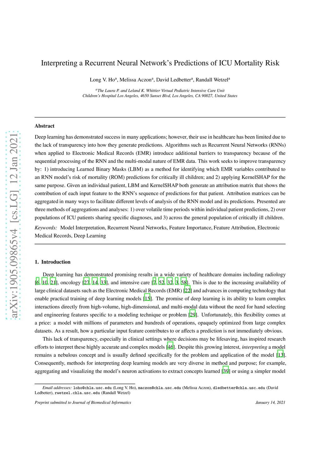 Deep learning has demonstrated success in many applications; however, their use in healthcare has been limited due to the lack of transparency into how they generate predictions. Algorithms such as Recurrent Neural Networks (RNNs) when applied to Electronic Medical Records (EMR) introduce additional barriers to transparency because of the sequential processing of the RNN and the multi-modal nature of EMR data. This work seeks to improve transparency by: 1) introducing Learned Binary Masks (LBM) as a method for identifying which EMR variables contributed to an RNN model's risk of mortality (ROM) predictions for critically ill children; and 2) applying KernelSHAP for the same purpose. Given an individual patient, LBM and KernelSHAP both generate an attribution matrix that shows the contribution of each input feature to the RNN's sequence of predictions for that patient. Attribution matrices can be aggregated in many ways to facilitate different levels of analysis of the RNN model and its predictions. Presented are three methods of aggregations and analyses: 1) over volatile time periods within individual patient predictions, 2) over populations of ICU patients sharing specific diagnoses, and 3) across the general population of critically ill children.