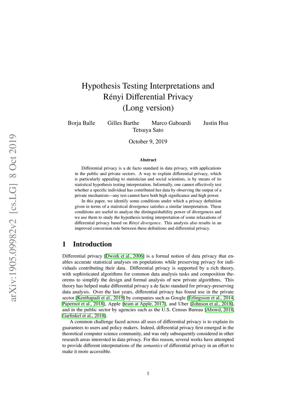 Hypothesis Testing Interpretations and Renyi Differential Privacy