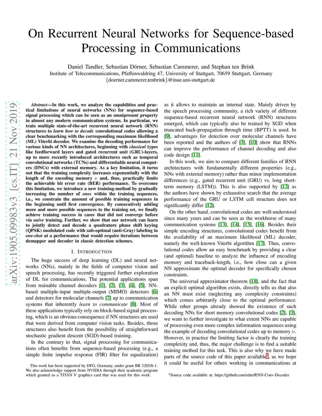 In this work, we analyze the capabilities and practical limitations of neural networks (NNs) for sequence-based signal processing which can be seen as an omnipresent property in almost any modern communication systems. In particular, we train multiple state-of-the-art recurrent neural network (RNN) structures to learn how to decode convolutional codes allowing a clear benchmarking with the corresponding maximum likelihood (ML) Viterbi decoder. We examine the decoding performance for various kinds of NN architectures, beginning with classical types like feedforward layers and gated recurrent unit (GRU)-layers, up to more recently introduced architectures such as temporal convolutional networks (TCNs) and differentiable neural computers (DNCs) with external memory. As a key limitation, it turns out that the training complexity increases exponentially with the length of the encoding memory and, thus, practically limits the achievable bit error rate (BER) performance. To overcome this limitation, we introduce a new training-method by gradually increasing the number of ones within the training sequences, i.e., we constrain the amount of possible training sequences in the beginning until first convergence. By consecutively adding more and more possible sequences to the training set, we finally achieve training success in cases that did not converge before via naive training. Further, we show that our network can learn to jointly detect and decode a quadrature phase shift keying (QPSK) modulated code with sub-optimal (anti-Gray) labeling in one-shot at a performance that would require iterations between demapper and decoder in classic detection schemes.