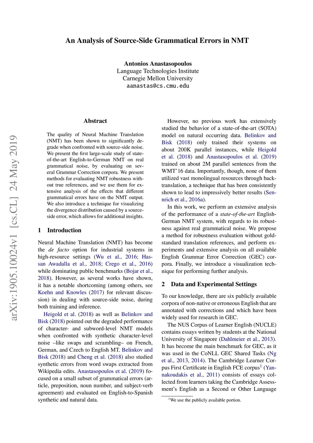 An Analysis of Source-Side Grammatical Errors in NMT