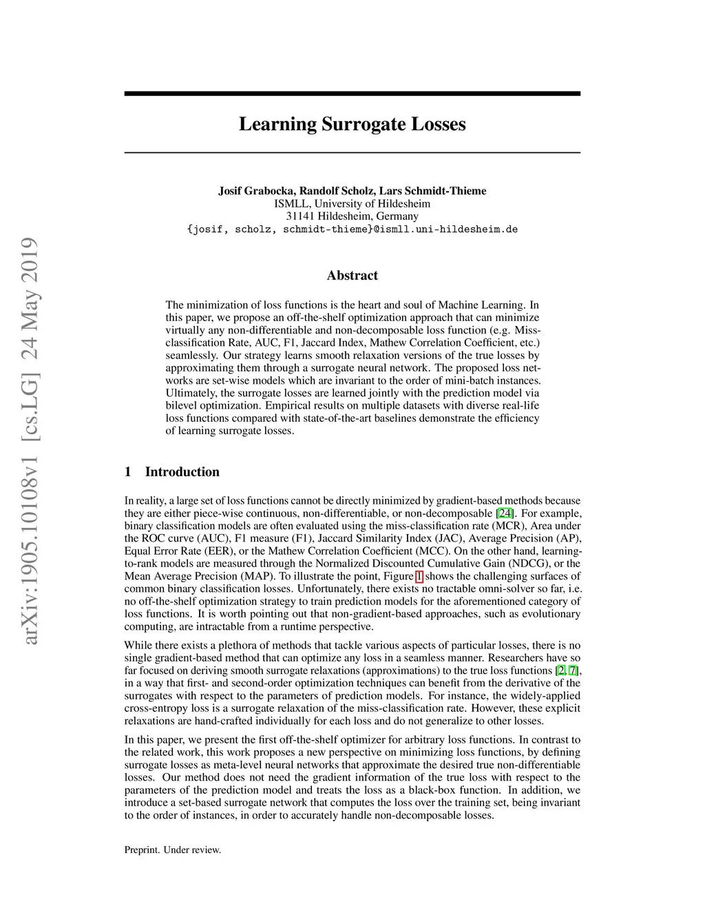 The minimization of loss functions is the heart and soul of Machine Learning. In this paper, we propose an off-the-shelf optimization approach that can minimize virtually any non-differentiable and non-decomposable loss function (e.g. Miss-classification Rate, AUC, F1, Jaccard Index, Mathew Correlation Coefficient, etc.) seamlessly. Our strategy learns smooth relaxation versions of the true losses by approximating them through a surrogate neural network. The proposed loss networks are set-wise models which are invariant to the order of mini-batch instances. Ultimately, the surrogate losses are learned jointly with the prediction model via bilevel optimization. Empirical results on multiple datasets with diverse real-life loss functions compared with state-of-the-art baselines demonstrate the efficiency of learning surrogate losses.