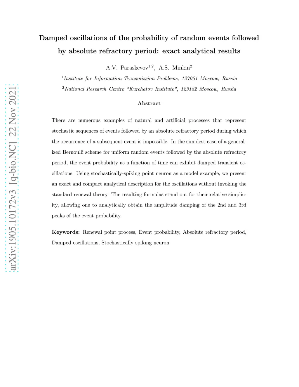 absolute refractory period: exact analytical results