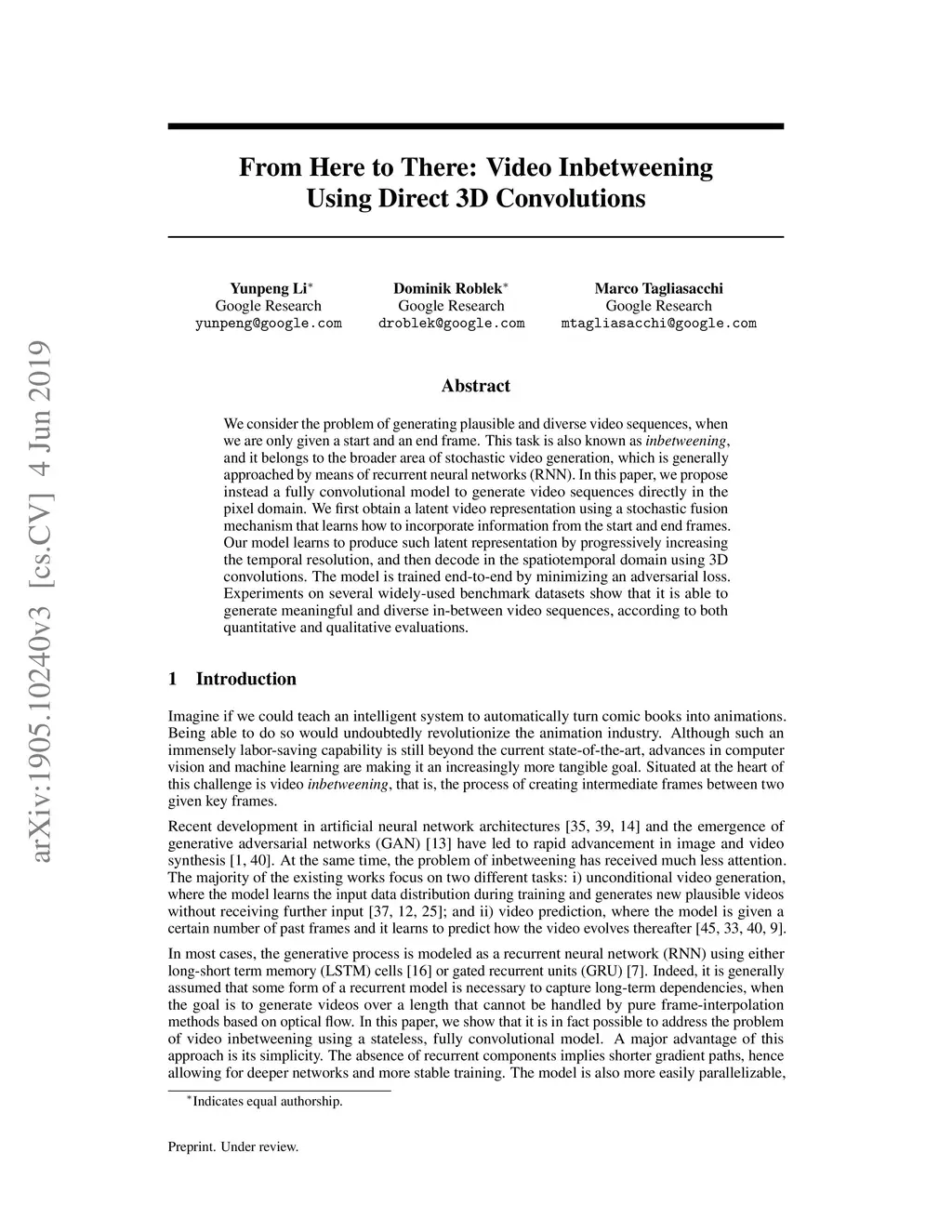 From Here to There: Video Inbetweening Using Direct 3D Convolutions
