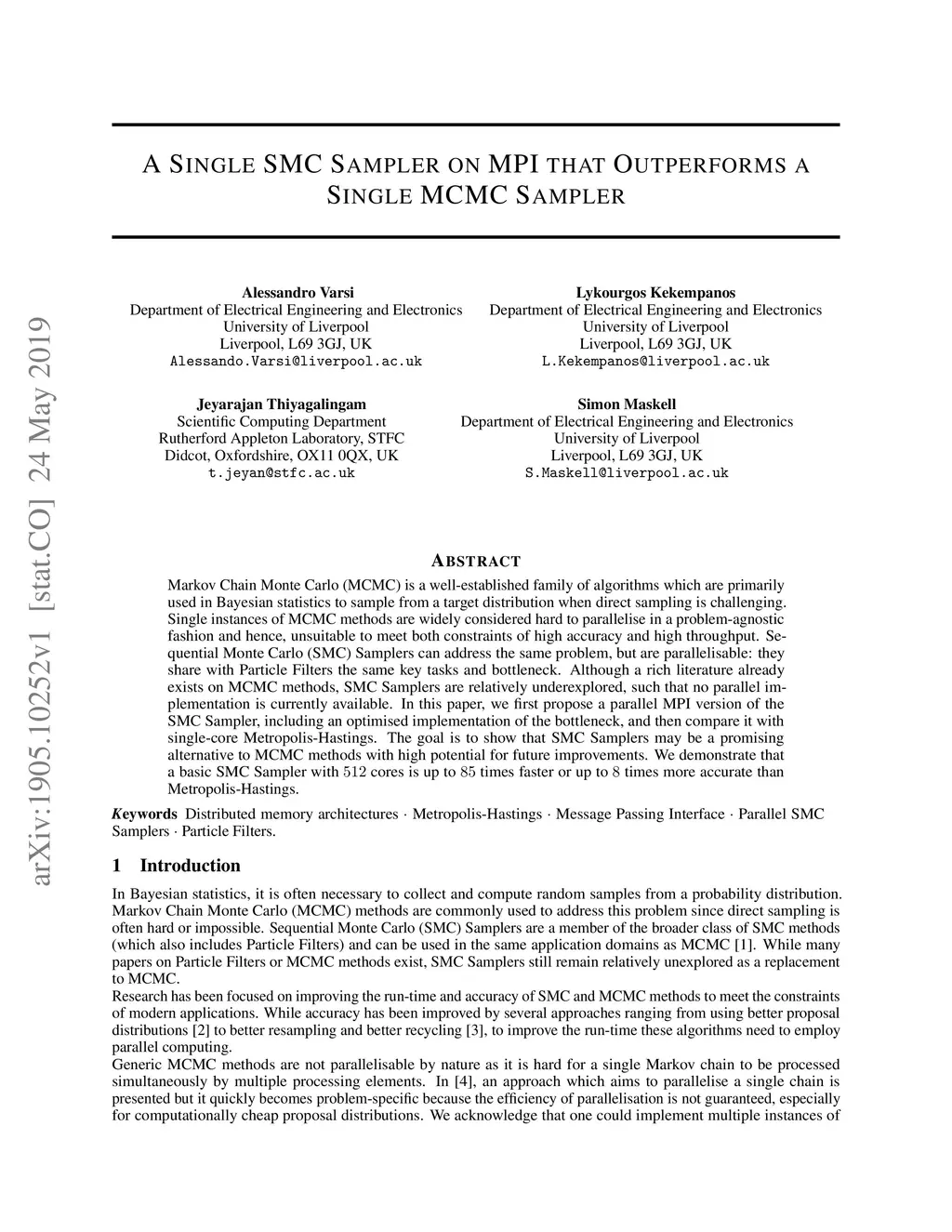 A Single SMC Sampler on MPI that Outperforms a Single MCMC Sampler