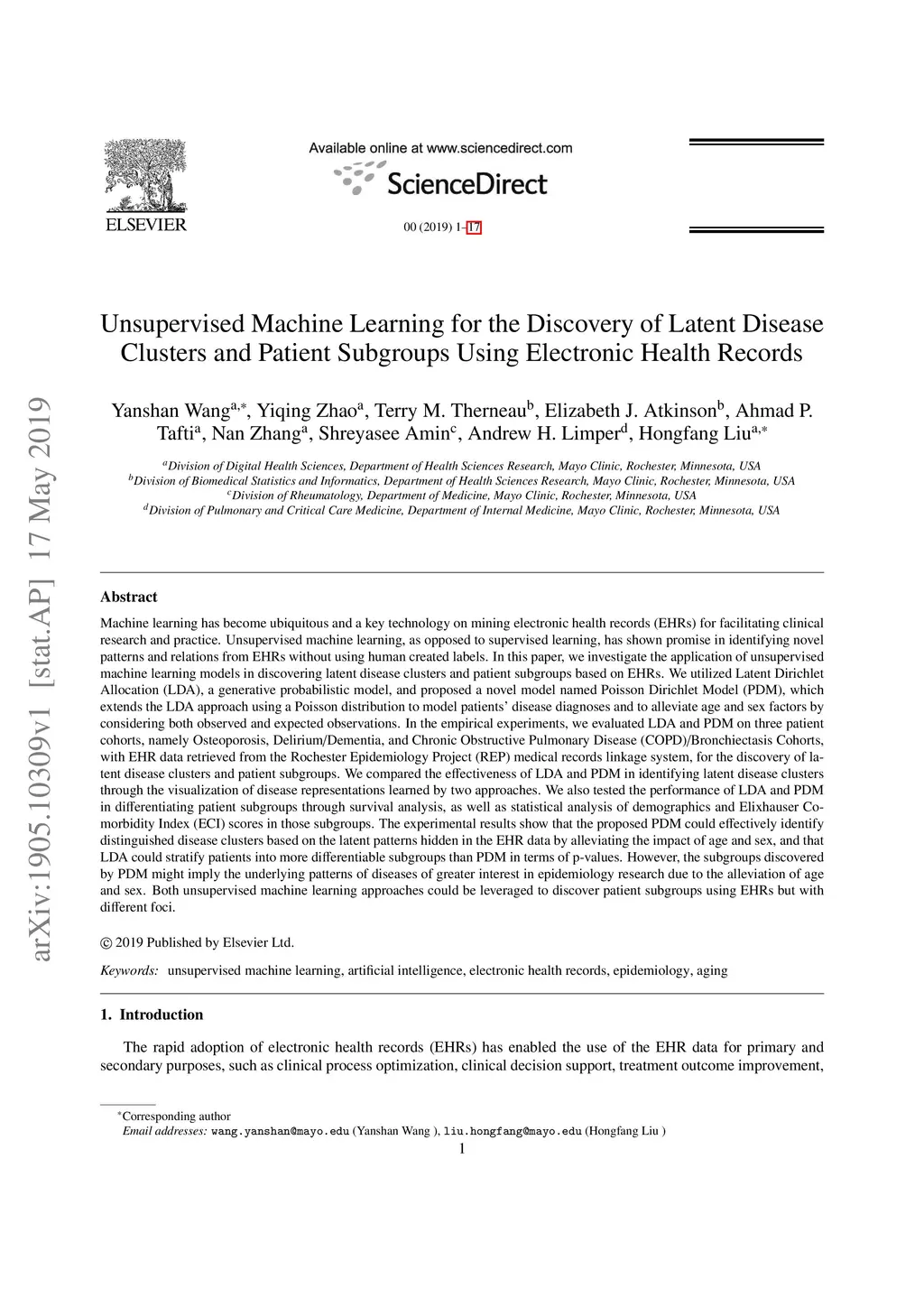 Unsupervised Machine Learning for the Discovery of Latent Disease