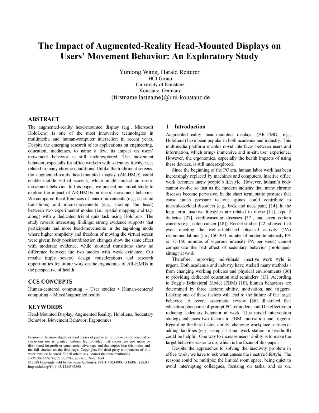 The Impact of Augmented-Reality Head-Mounted Displays on Users' Movement