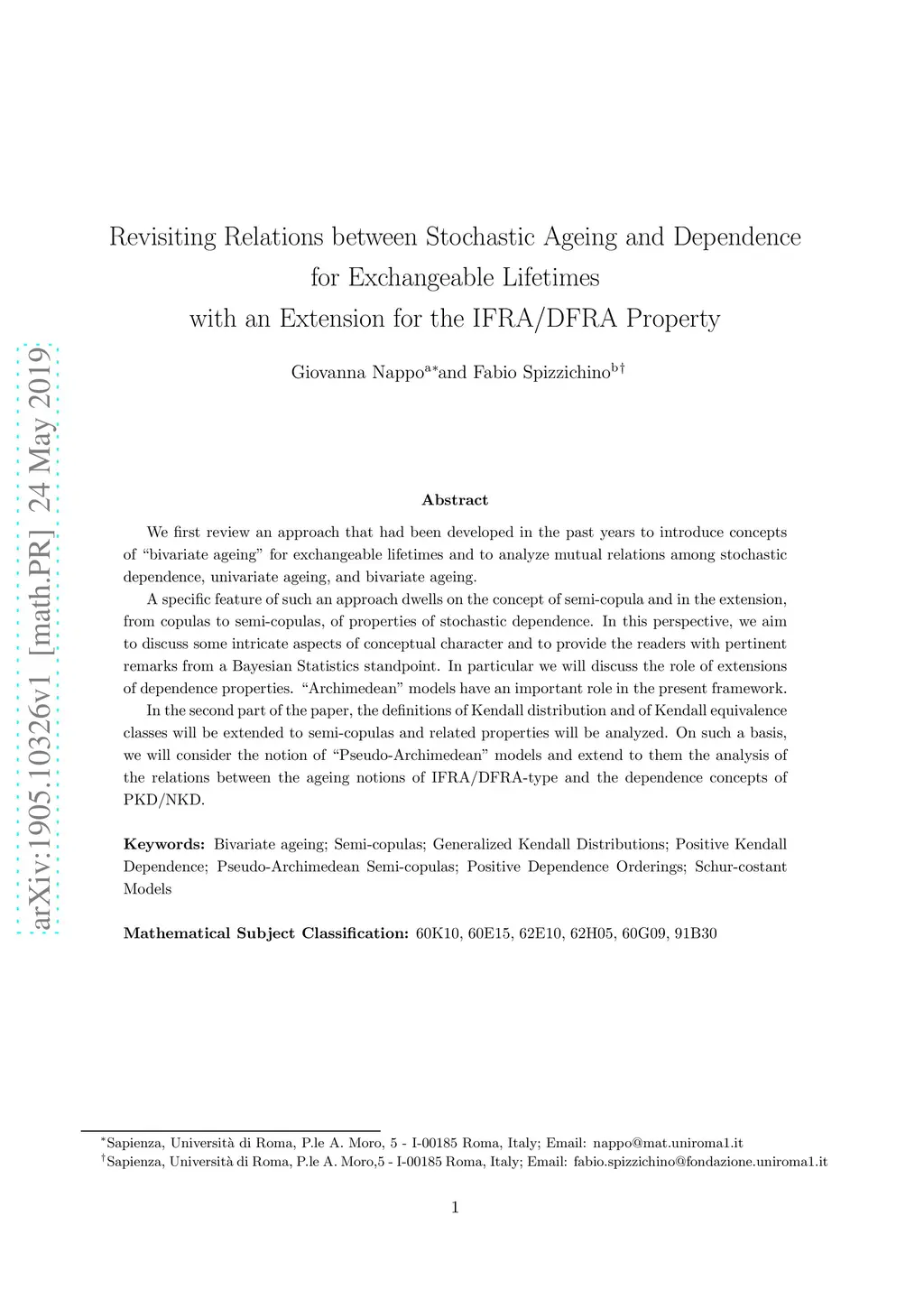 We first review an approach that had been developed in the past years to introduce concepts of "bivariate ageing" for exchangeable lifetimes and to analyze mutual relations among stochastic dependence, univariate ageing, and bivariate ageing. A specific feature of such an approach dwells on the concept of semi-copula and in the extension, from copulas to semi-copulas, of properties of stochastic dependence. In this perspective, we aim to discuss some intricate aspects of conceptual character and to provide the readers with pertinent remarks from a Bayesian Statistics standpoint. In particular we will discuss the role of extensions of dependence properties. "Archimedean" models have an important role in the present framework. In the second part of the paper, the definitions of Kendall distribution and of Kendall equivalence classes will be extended to semi-copulas and related properties will be analyzed. On such a basis, we will consider the notion of "Pseudo-Archimedean" models and extend to them the analysis of the relations between the ageing notions of IFRA/DFRA-type and the dependence concepts of PKD/NKD.