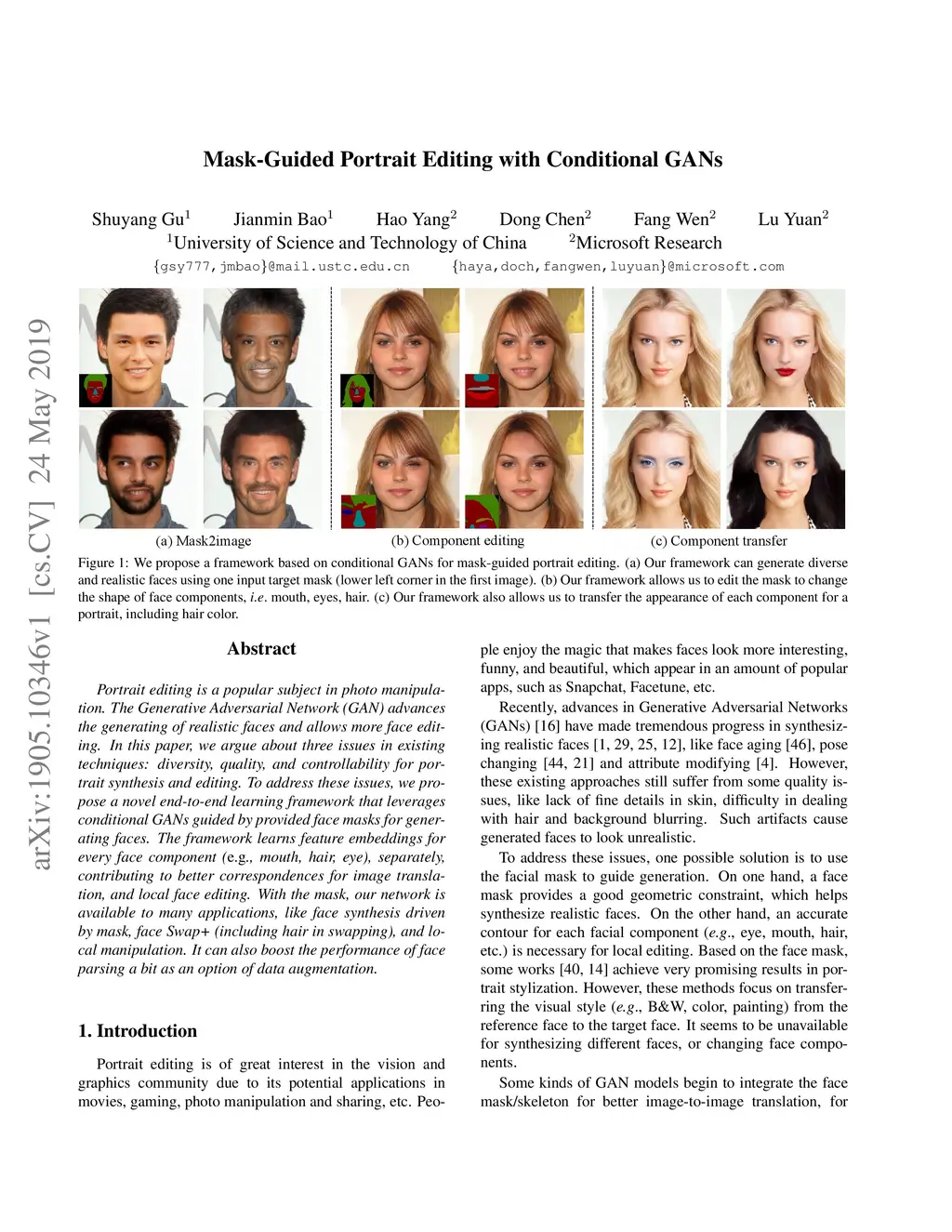 Mask-Guided Portrait Editing with Conditional GANs