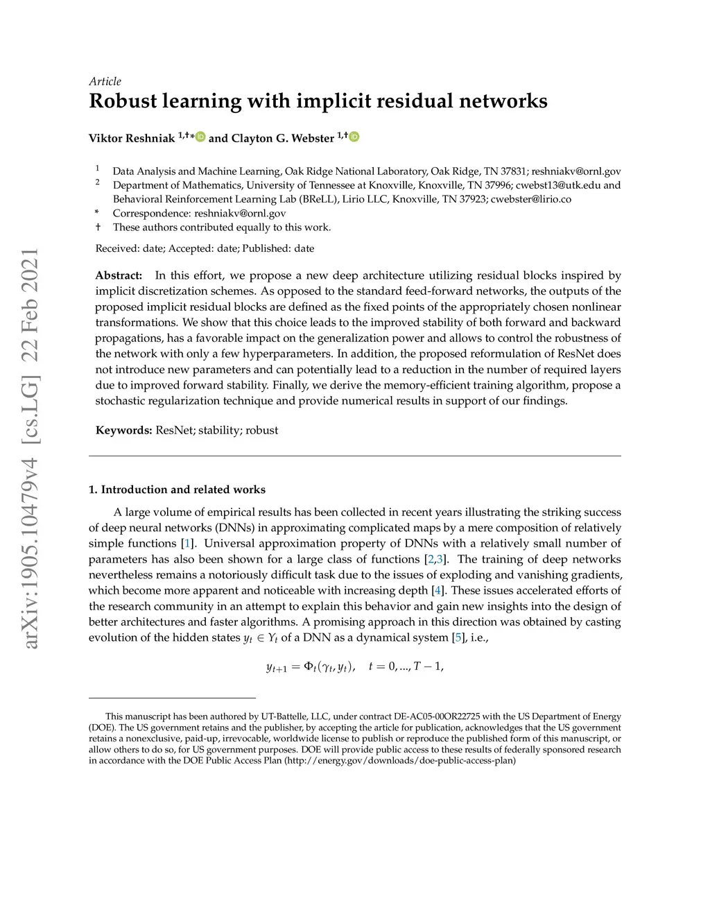 Robust learning with implicit residual networks