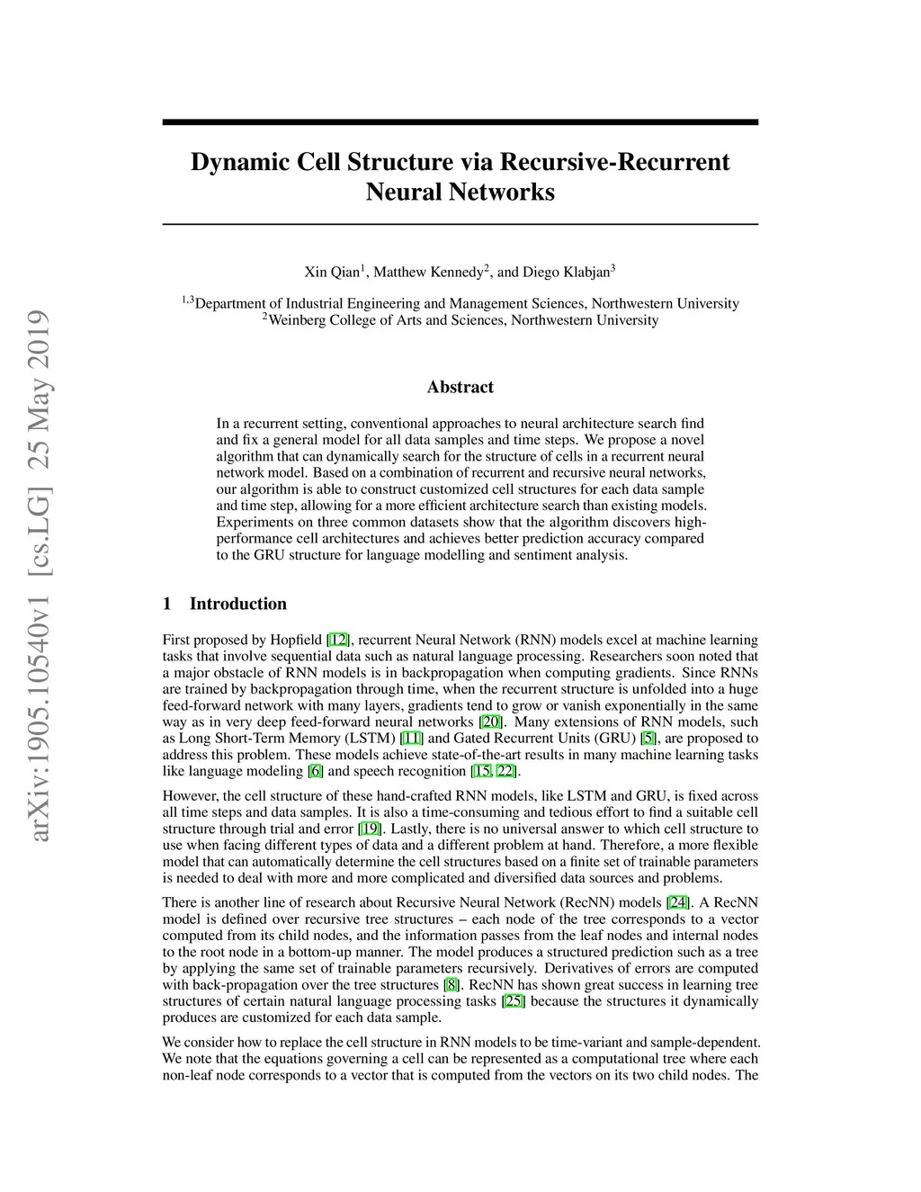 Dynamic Cell Structure via Recursive-Recurrent Neural Networks